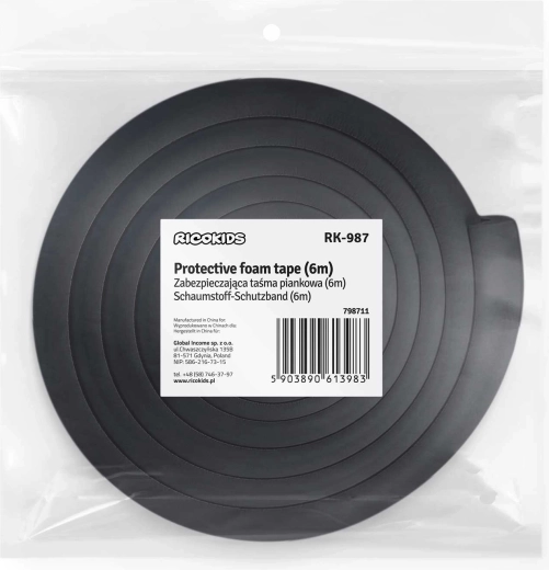 Sikkerheden for dit barn begynder derhjemme. RICOKIDS beskyttende skumtape blødgør skarpe kanter på borde, skabe og hylder og minimerer risikoen for skader. Det fleksible materiale tilpasser sig nemt forskellige former og gør præcis tilskæring mulig. Installationen er hurtig og ren – affedt blot overfladen, fjern beskyttelsesfolien, og tryk godt fast.