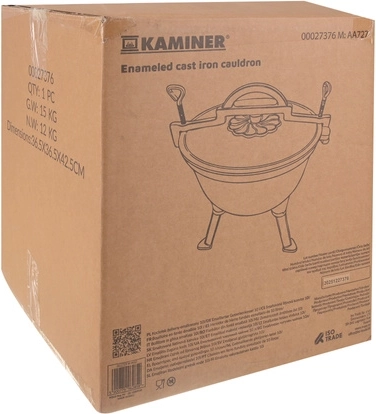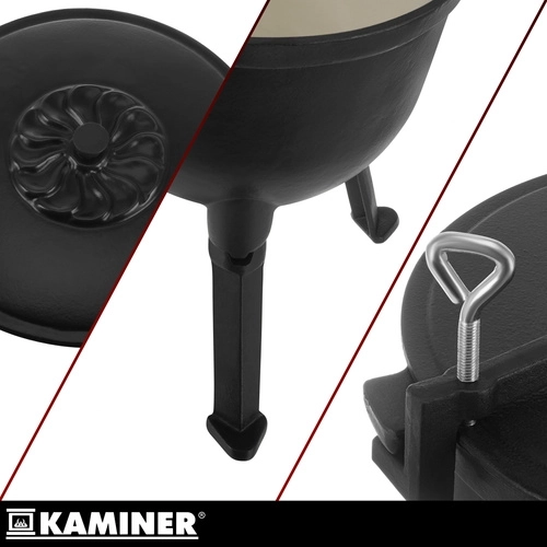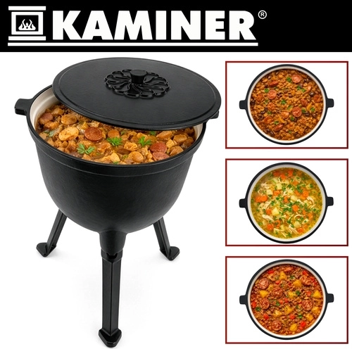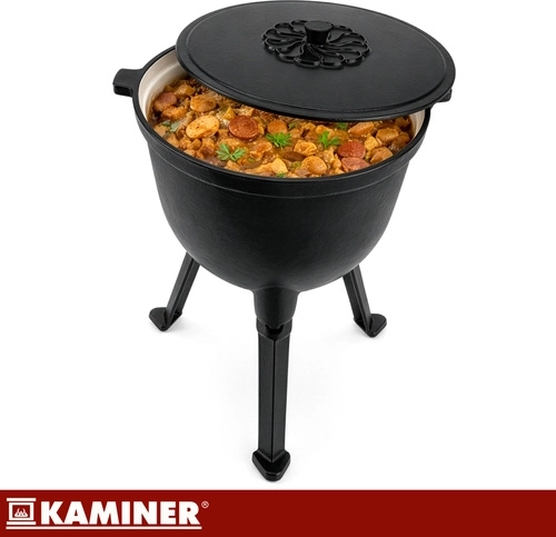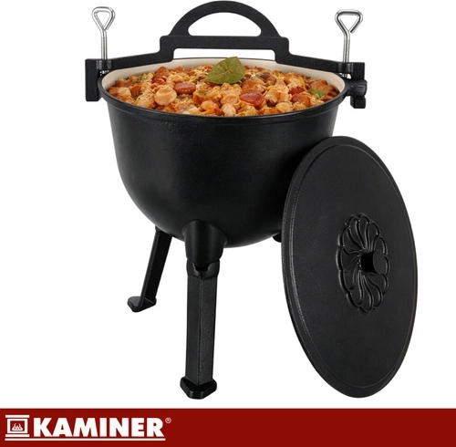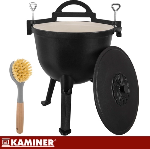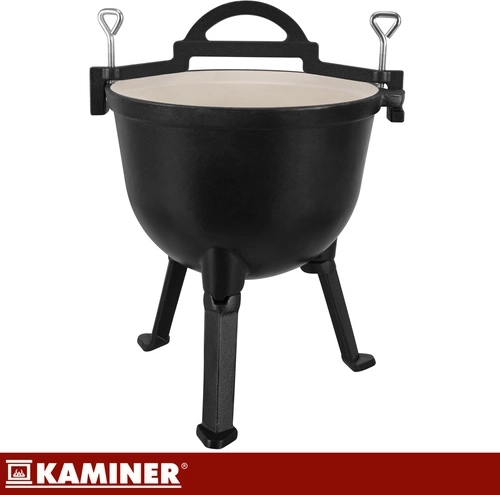 Den robuste støbejernskonstruktion i KAMINER-gryden tåler høje temperaturer og langvarig brug. De emaljerede indvendige overflader i gryde og låg forenkler vedligeholdelsen – uden behov for regelmæssig indbrænding eller oliering. Med en kapacitet på 10 l kan du tilberede rigelige portioner til hele familien eller en vennegruppe.