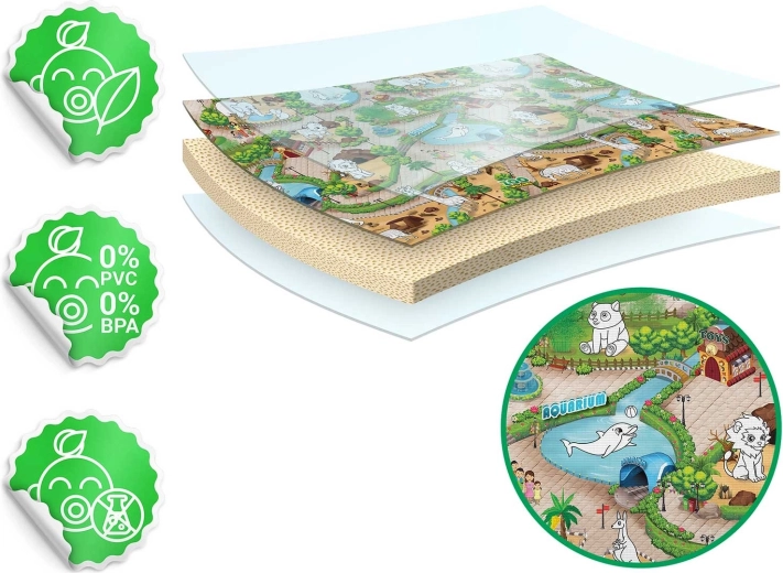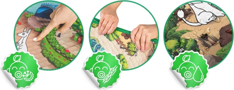 Takket være det kvalitetsrige EVA-skum er måtten blød, holdbar og vandtæt, med kantbåndede kanter for længere levetid. Den giver termisk isolering fra gulvet og opsamler hverken støv eller mider, hvilket gør den velegnet til allergikere. Den rulles let sammen og opbevares, og kan bruges på børneværelset, på fliser, på terrassen og til picnic.