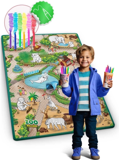 Den store Ricokids malemåtte på 120 × 92 cm skaber et sikkert og inspirerende sted for børn til både leg og kreativitet. Den specielle overflade får tegninger med tusch til at tørre hurtigt, så de ikke smitter af på hænder eller omgivelser. Når legen er slut, skal der blot bruges en fugtig klud, så er måtten ren igen – klar til endnu en runde fantasi.