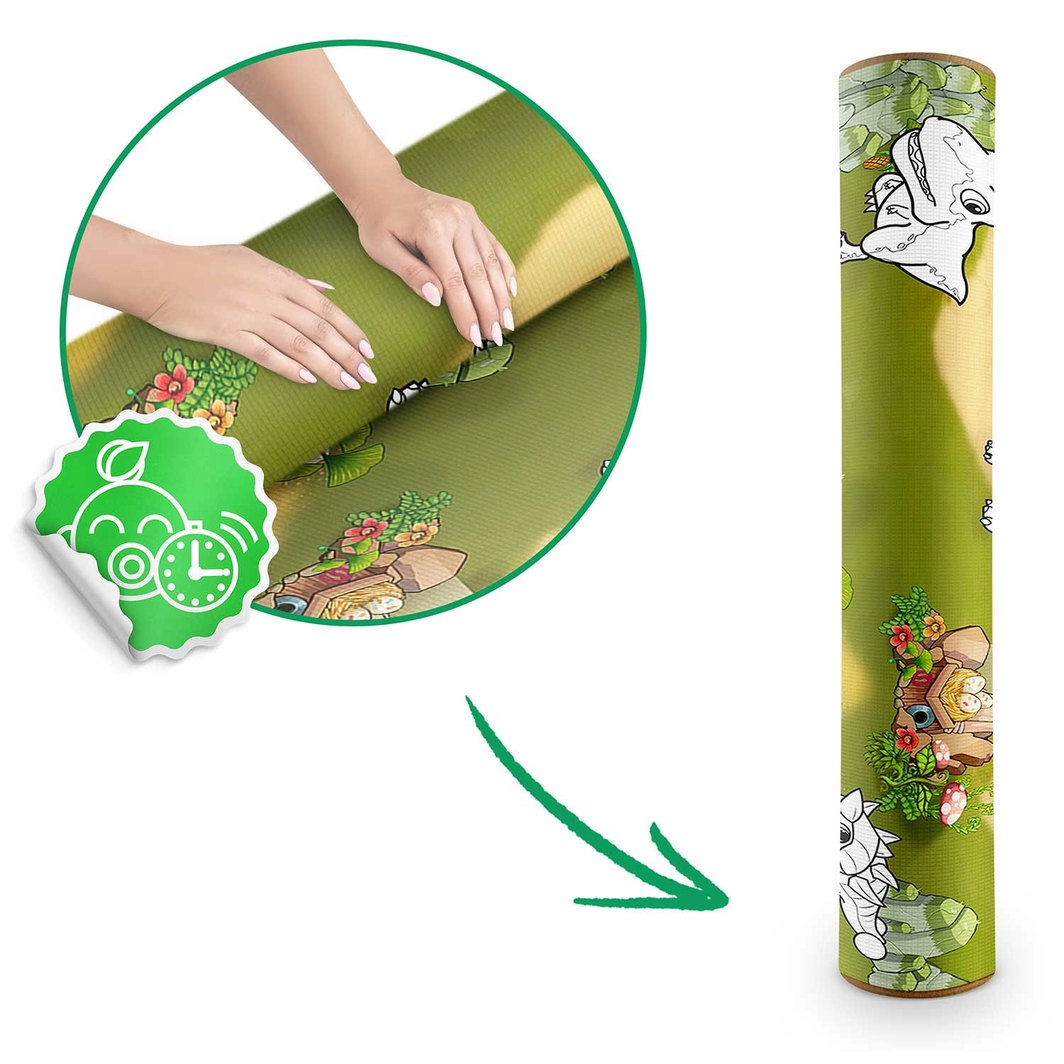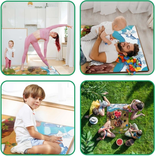 Takket være det rullebare design kan den nemt bæres og opbevares. Perfekt til tegning, leg, de første krybeture og fælles øvelser. Den robuste kantning forlænger levetiden, og de moderne motiver lyser ethvert børneværelse, legerum og terrasse op.