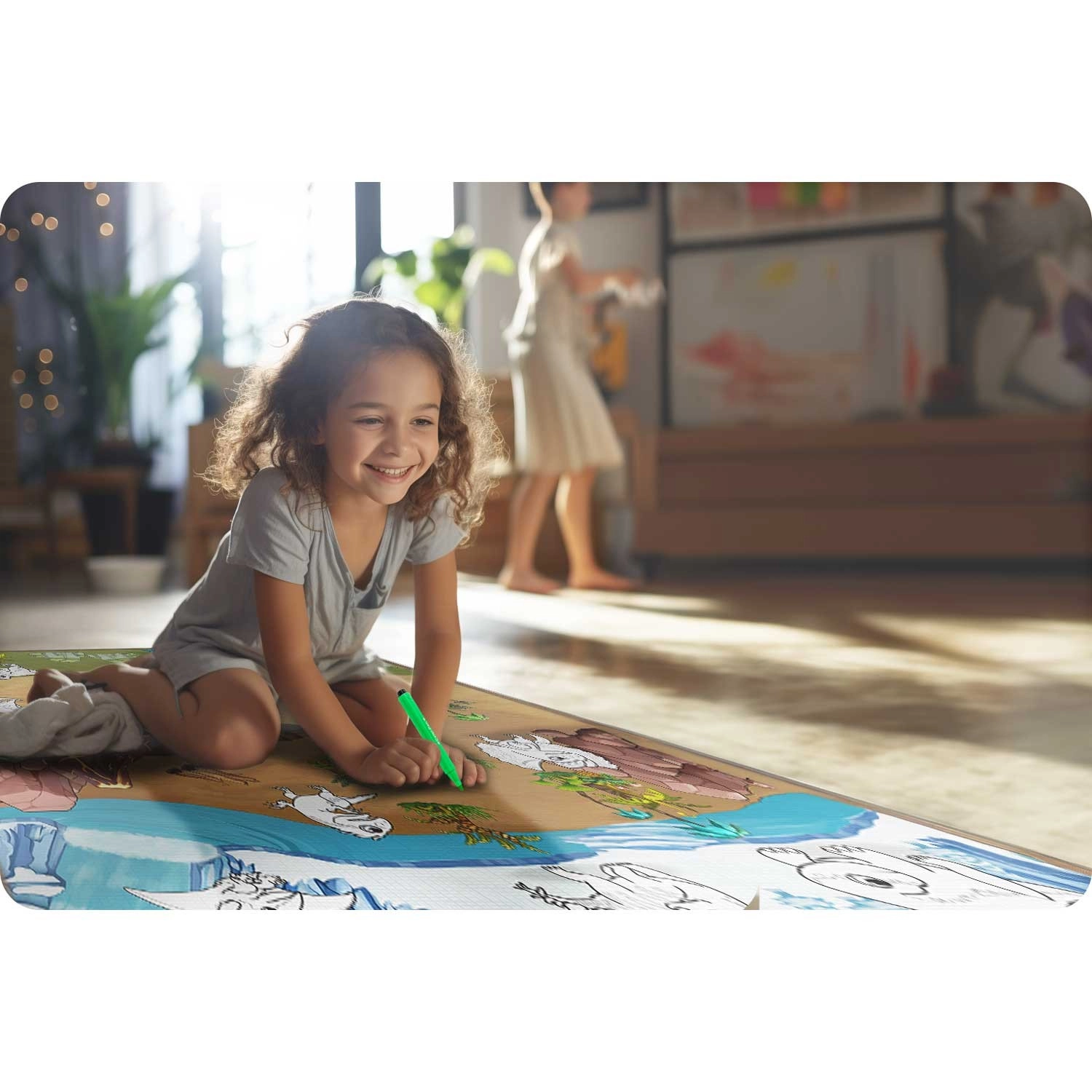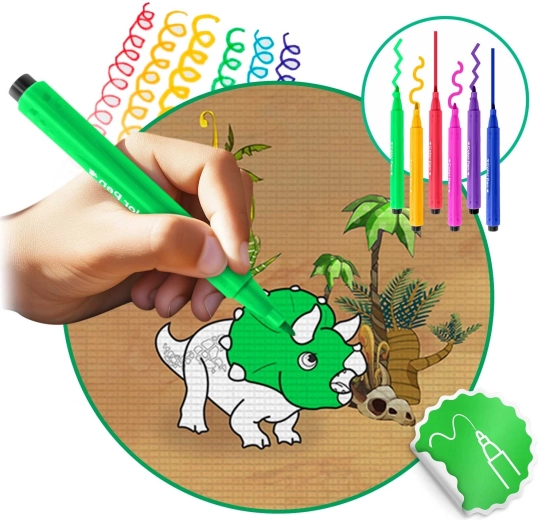 Skab en kreativ zone til børnene hvor som helst, hjemme og ude. Den storformat farvelægningsmåtte af EVA-skum er blød, behagelig at røre ved og beskytter mod gulvkulde. Den særlige overflade gør det muligt at tegne med almindelige tuscher – farverne tørrer hurtigt, smitter ikke af på hænderne og kan let tørres væk med en fugtig klud.