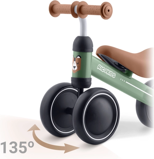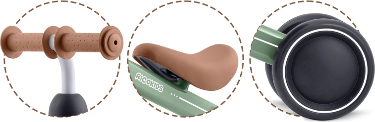 Ricokids løbecykel med tre hjul er det ideelle valg som det allerførste køretøj. Den lette og holdbare konstruktion hjælper børn med at udvikle koordination og balancekontrol, mens det meget lave sæde gør det nemt at skubbe sig frem og sætte hele foden i jorden. Det minimalistiske design og de kompakte mål passer både i lejligheden og udendørs.