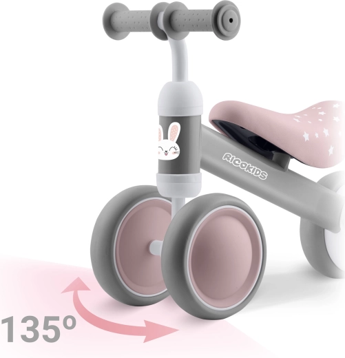 Let og stabil trehjulet Ricokids løbecykel til de mindste fra 12 måneder hjælper med at udvikle balance og koordination. Den har en holdbar stålramme, blødt skumsæde, gummigreb med stoppere og en sikker begrænset styrevinkel, der forhindrer overdrejning af styret. De kompakte mål og de brede hjul sikrer tryghed og komfort ved kørsel både inde og ude.