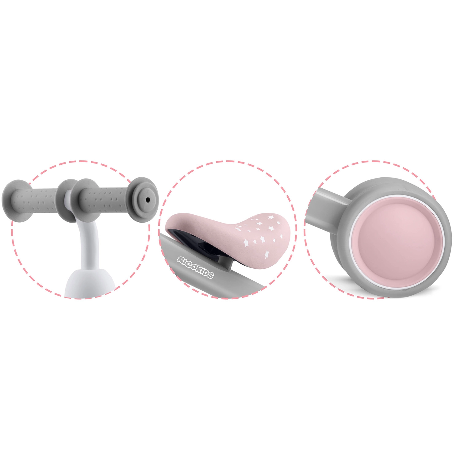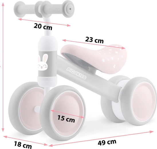 Det første skridt mod at cykle? Ricokids løbecykel er det ideelle valg. Den trehjulede konstruktion med brede hjul gør den usædvanligt stabil, mens det lave sæde lader barnet nå jorden sikkert. Den lette og sikre konstruktion uden pedaler understøtter naturlig bevægelse, motorik og selvtillid.