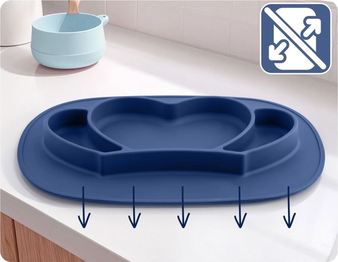 Tallerkenen er temperaturbestandig fra -20 °C til +220 °C – du kan fryse den, opvarme i mikroovn og ovn samt uden bekymring vaske den i opvaskemaskinen. Den sugende base sikrer stabilitet på de fleste glatte overflader, så tallerkenen ikke glider eller vælter.