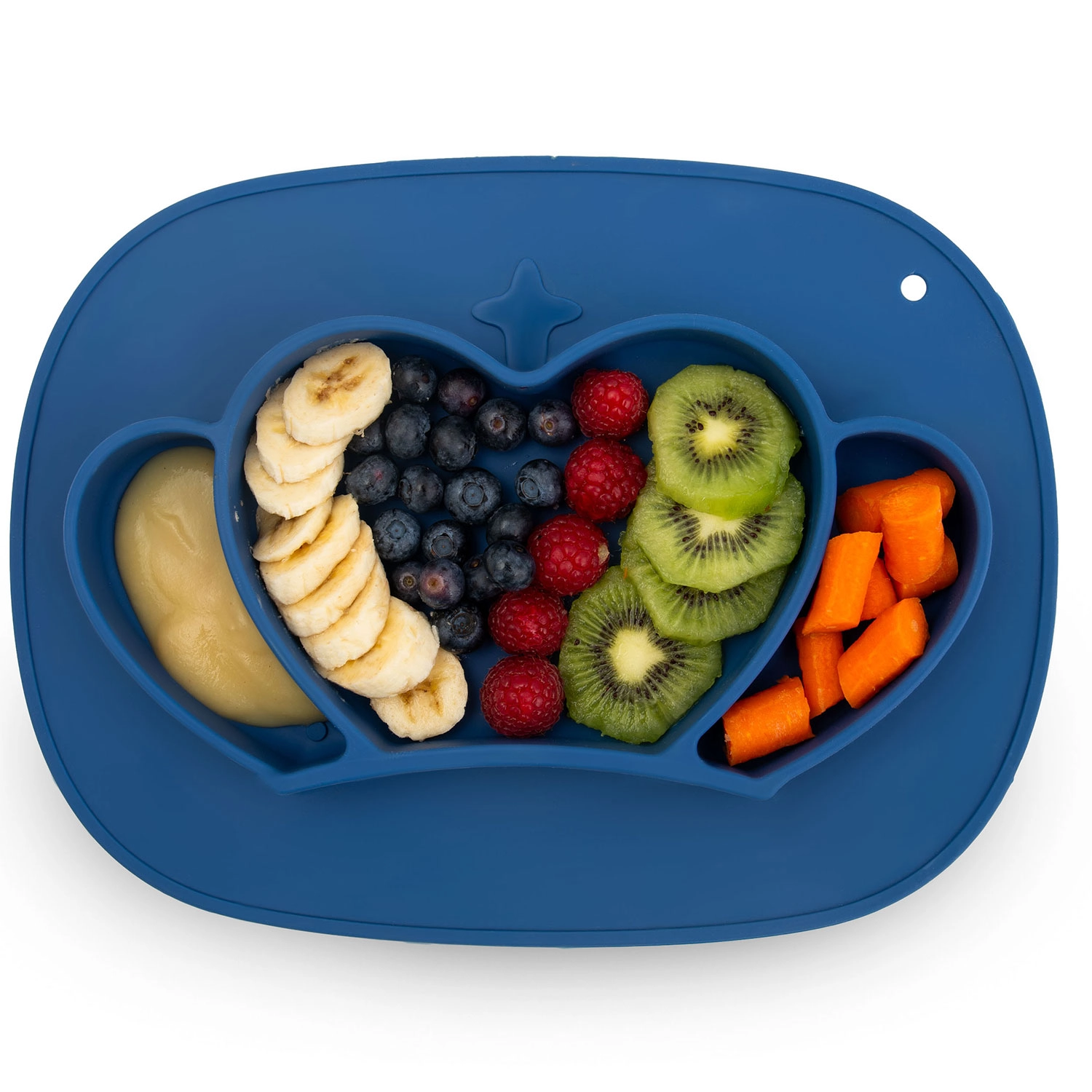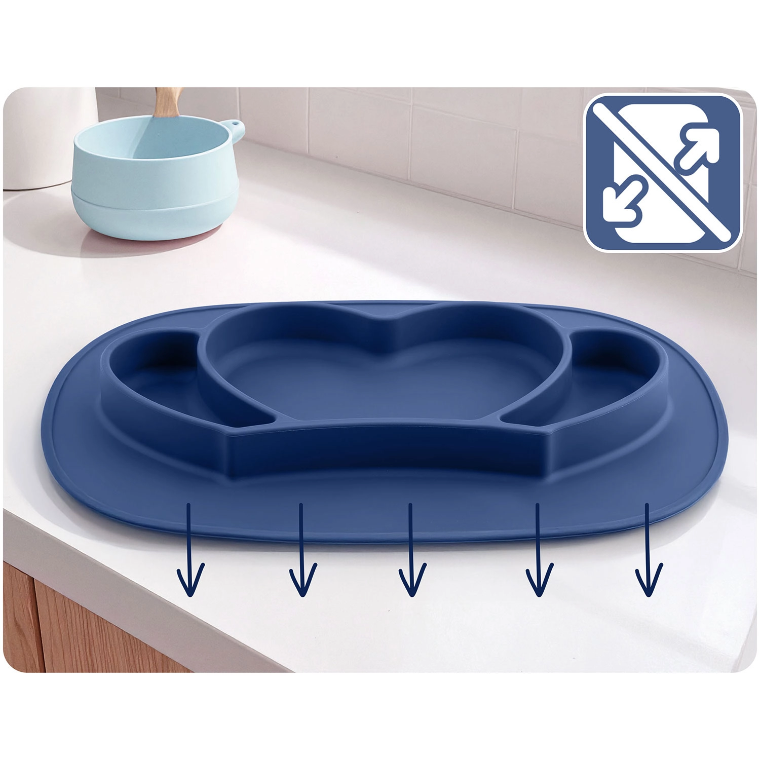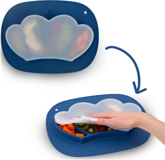 Opdelt silikone-tallerken med sugekop hjælper med at adskille smage og portioner, støtter selvstændig spisning og begrænser spild. Silikone i fødevarekvalitet er uden BPA, ftalater og PVC, holdbar og behageligt blød at røre ved. Det integrerede låg holder maden frisk længere og er perfekt til ture.