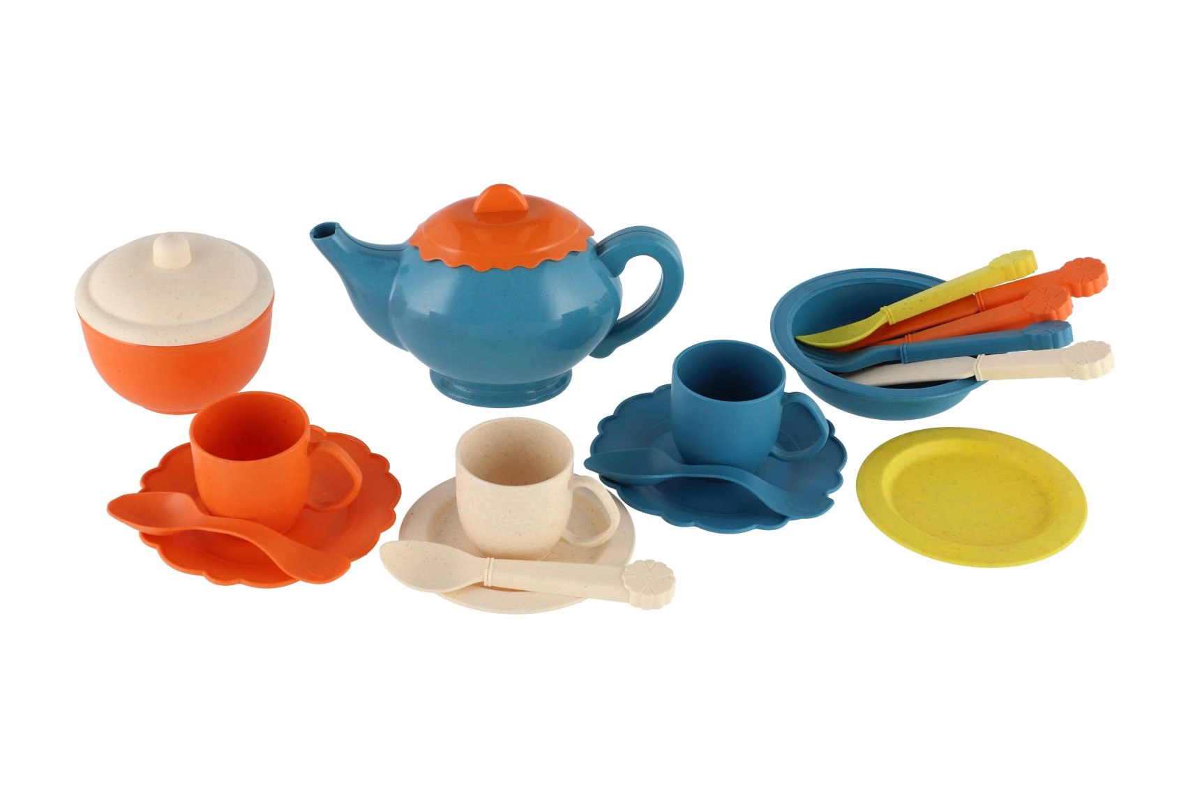 Dette farverige børneservice gør hver dag til sjov leg i hjemmet. Børn kan “vaske” service, sætte det i opvaskestativet og bruge det igen til servering af te eller en snack. Takket være let og holdbar plast er sættet sikkert for små hænder og nemt at holde rent.