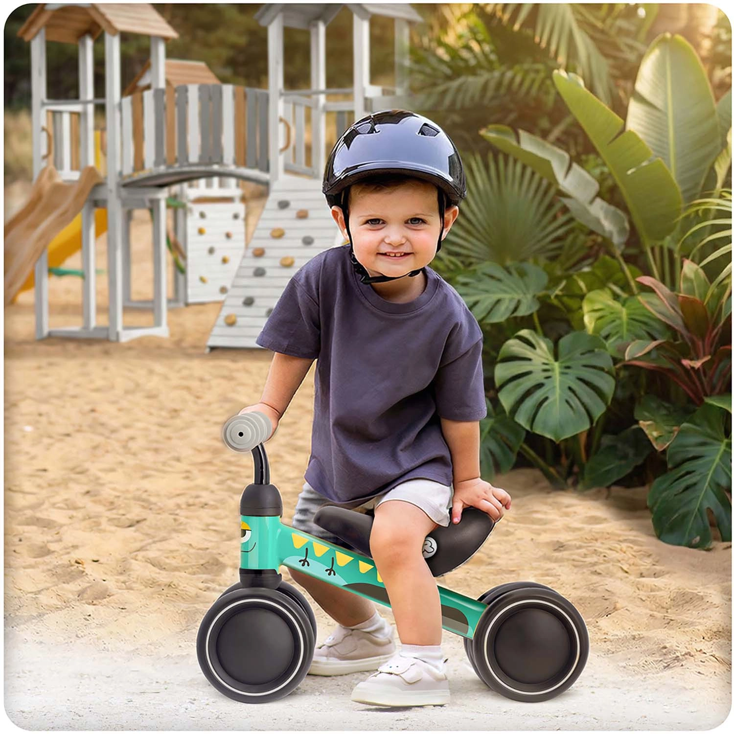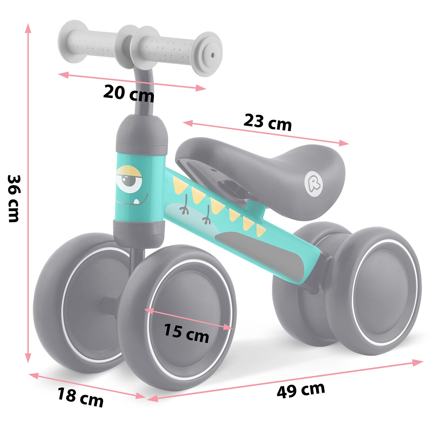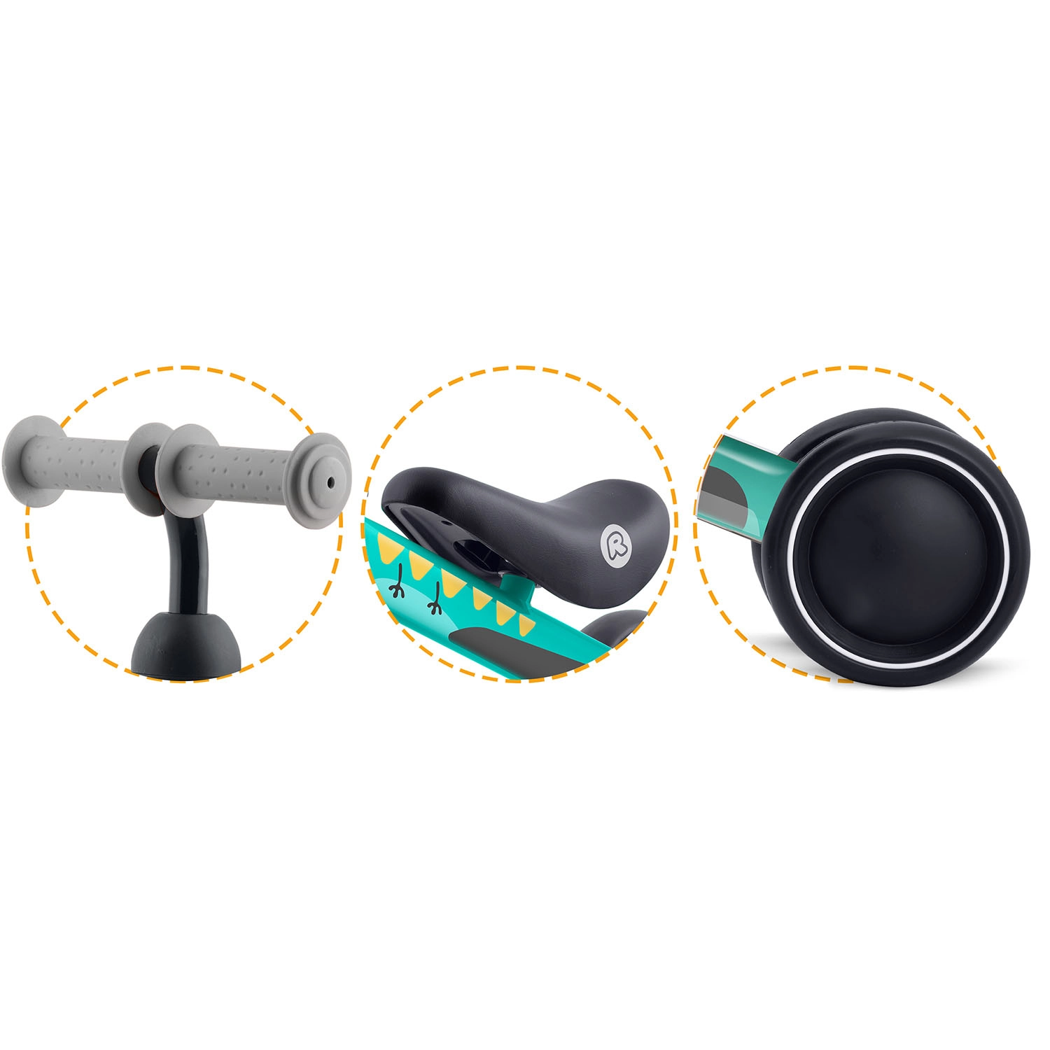 Fire/brede hjul af slidstærk plast giver fremragende vejgreb og stabilitet for sikker indlæring af balance fra de allerførste ture.