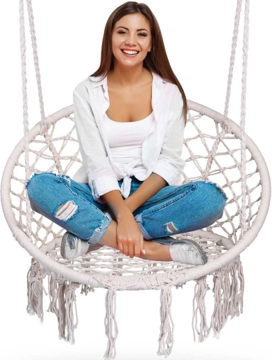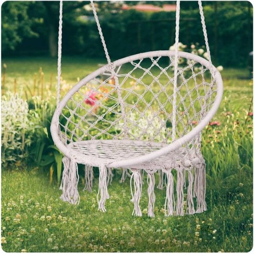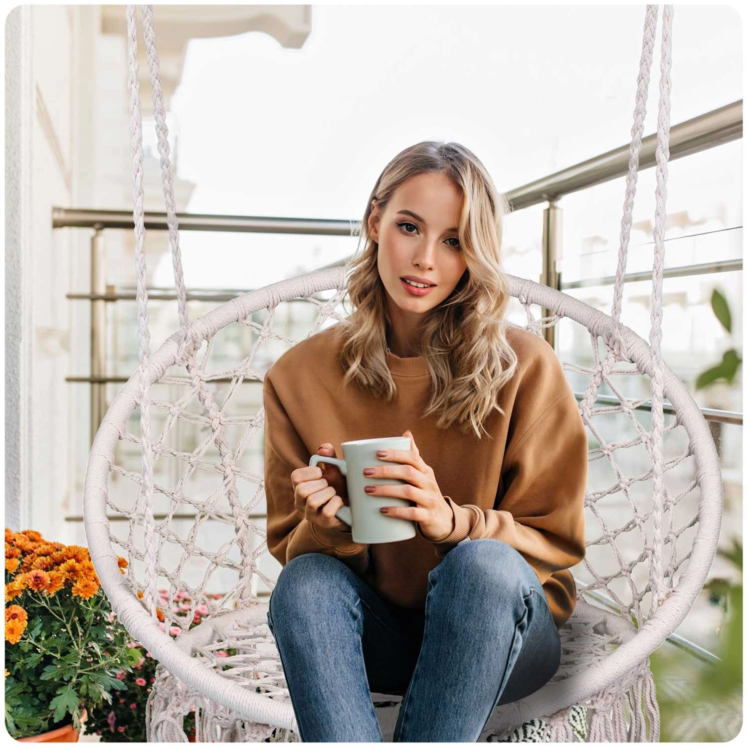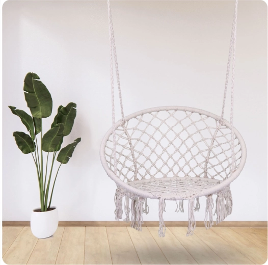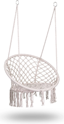 Hængestolen i den populære boho-stil er perfekt til afslapning på altanen, terrassen og i stuen. Takket være den ergonomiske form med bredt sæde og højere ryglæn tilbyder den komfort ved læsning, hvile og blid gyngen. Slidstærke materialer og en solid flettet snorflet sikrer lang levetid.