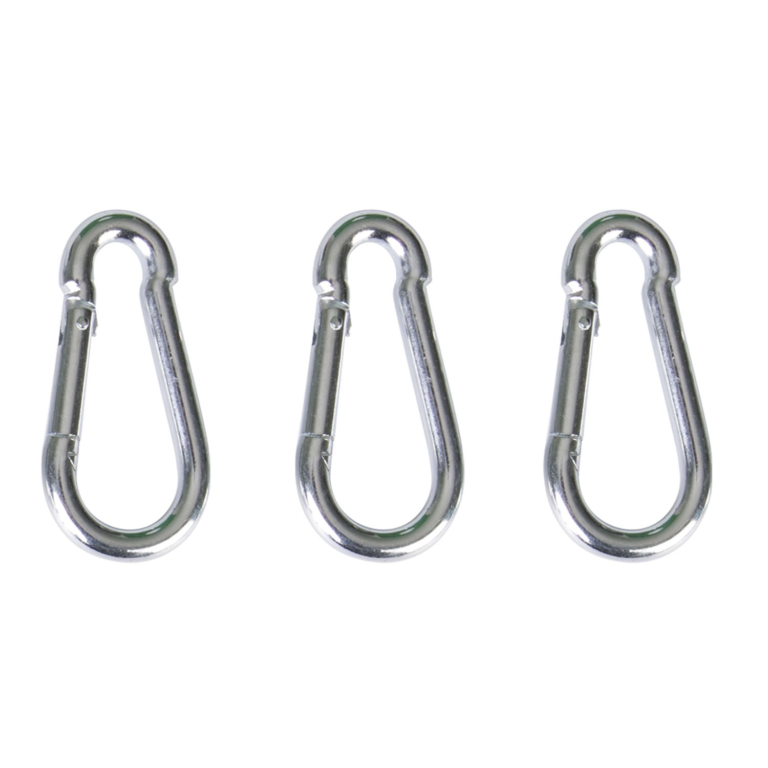 Tre robuste karabiner med selvlukkende fjeder gør det nemt at hænge op og skifte tilbehør. Velegnet til kæder, øjer og reb.