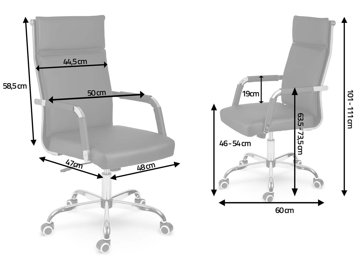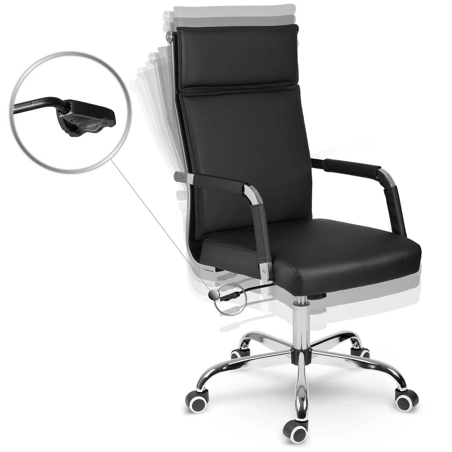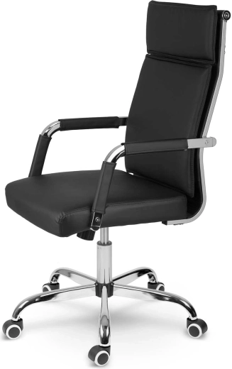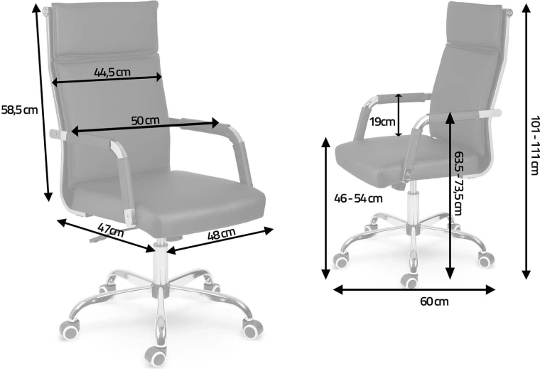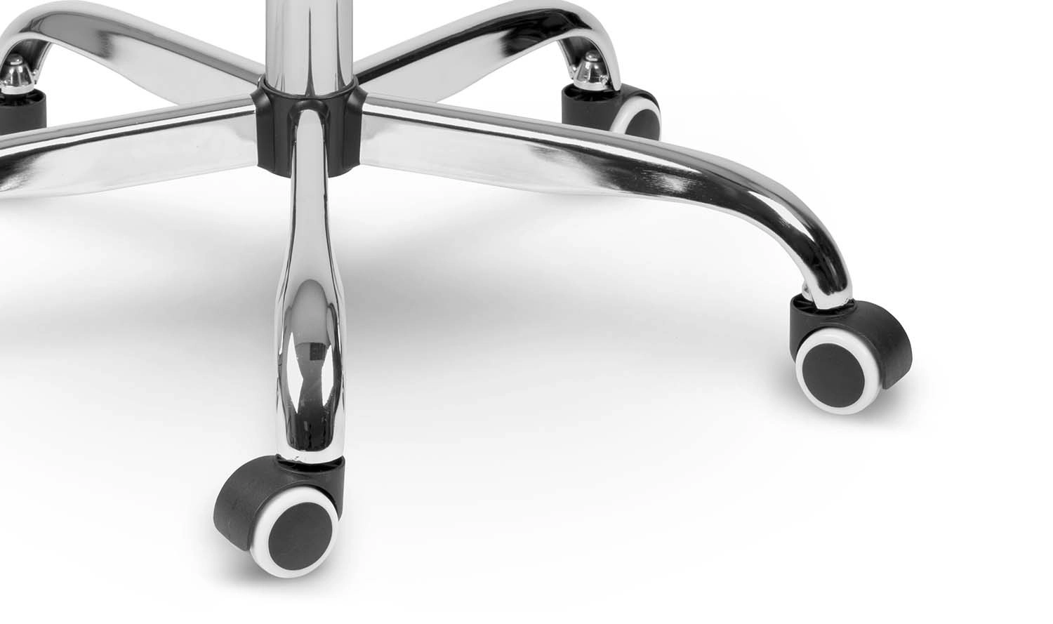 Den stabile femstjernede base i krom og de stille dobbelthjul beskytter gulvet mod ridser og sikrer en glidende kørsel.