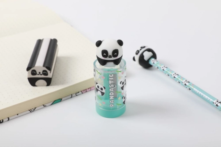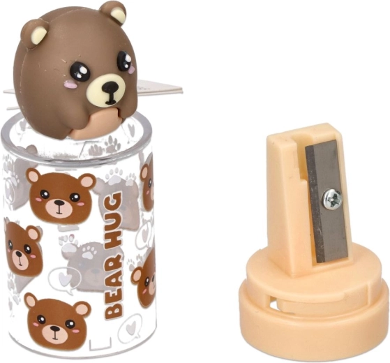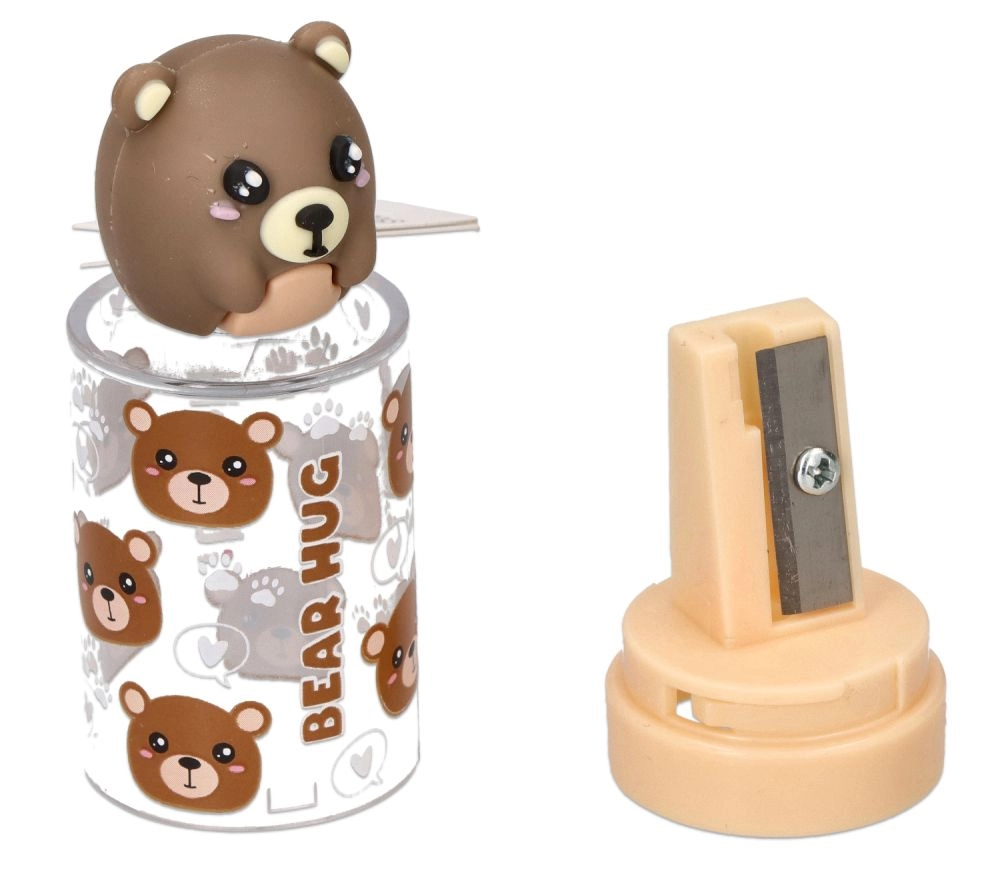 Gør spidsning af blyanter sjovt. Denne blyantspidser med gennemsigtig beholder opfanger alle spåner, så både penalhus og arbejdsbord forbliver rene. De søde motiver med bjørn og panda glæder både børn og dem, der elsker legende design.