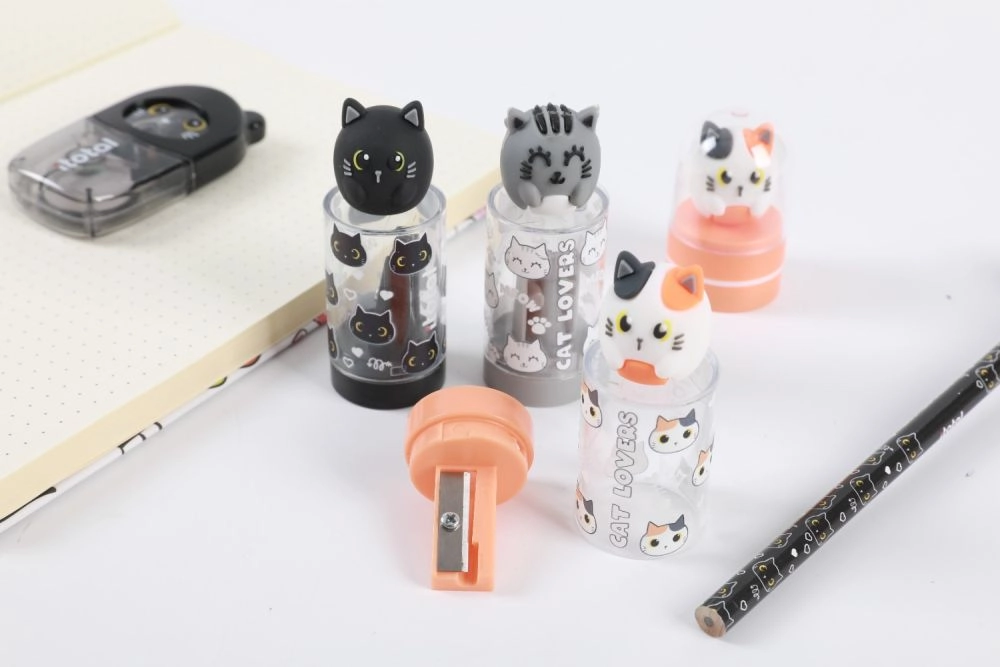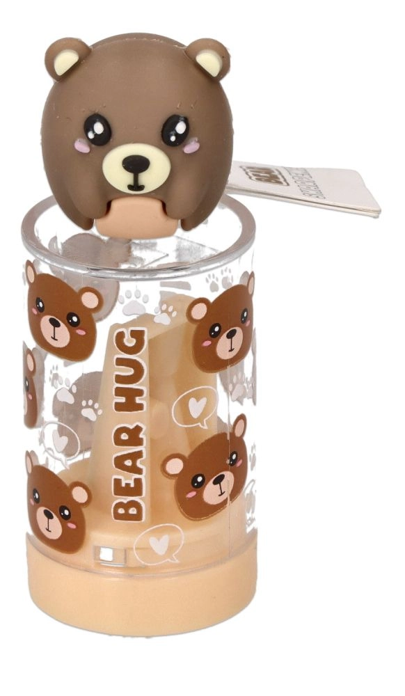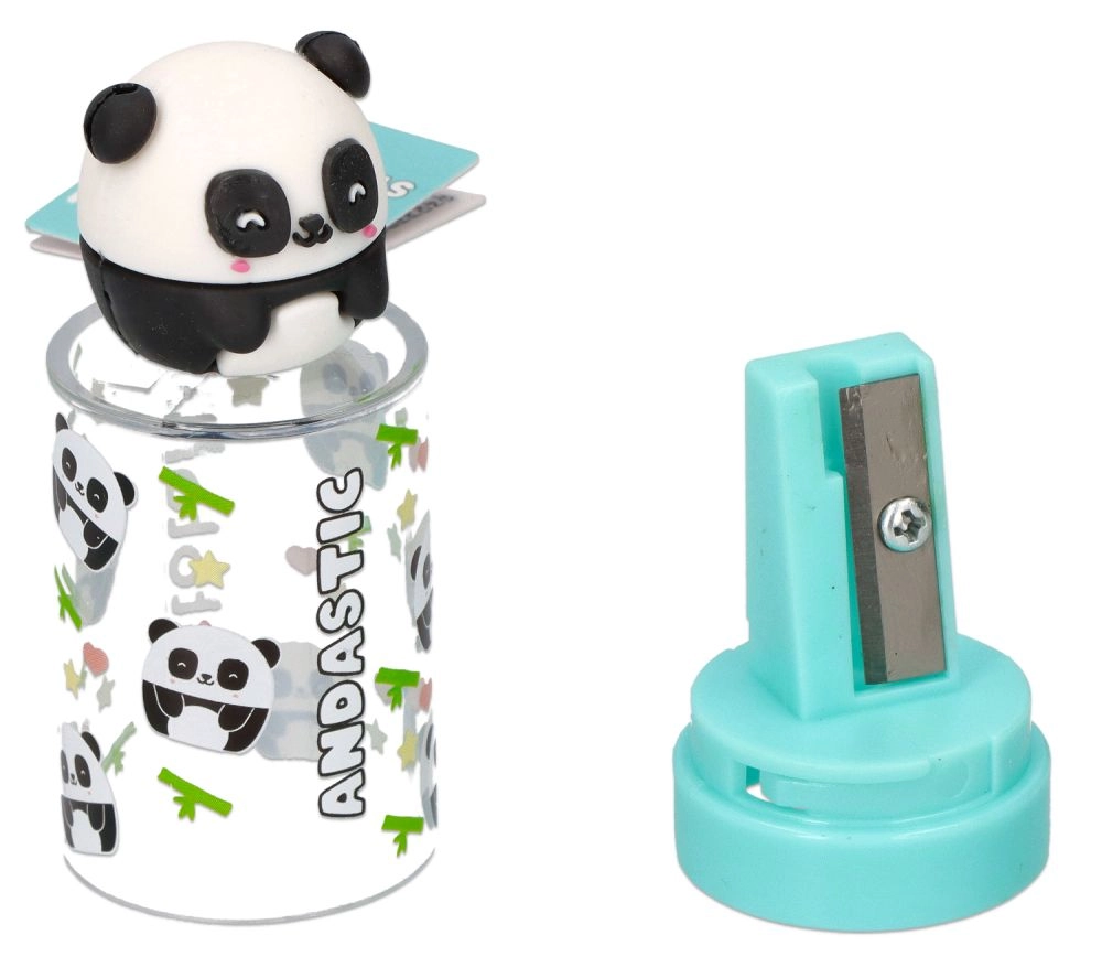 Praktisk og sød blyantspidser med integreret beholder til spåner for et rent skrivebord. Vælg mellem motiverne bjørn og panda. De kompakte mål 7,5 × 2,5 cm passer i både penalhus og rygsæk. Sikker metal klinge og CE-certificering for bekymringsfri brug derhjemme og i skolen.