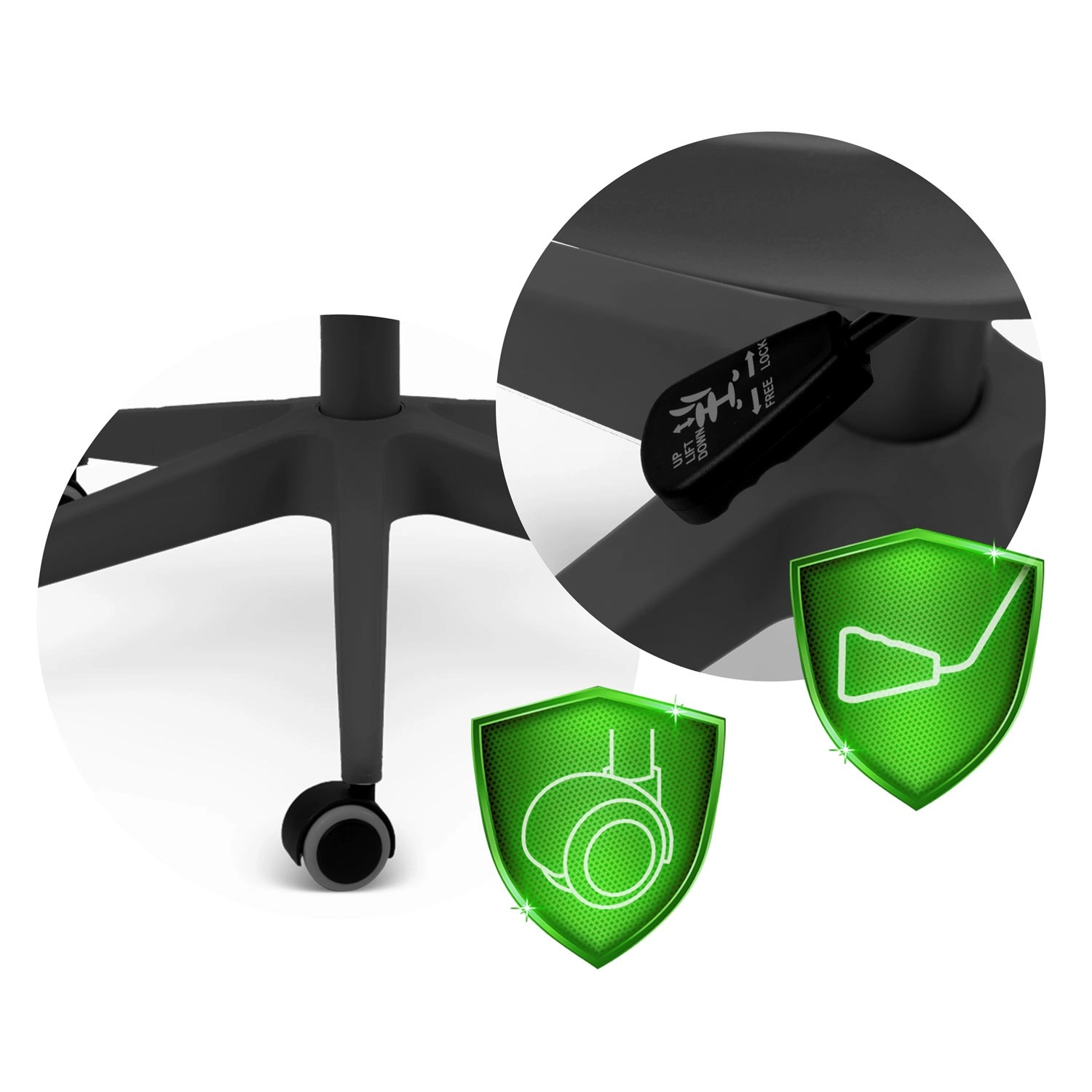Med jævn højdejustering via SoftUp tilpasser du nemt stolen til dit arbejdsbord. SoftSwing-mekanismen muliggør afslappende gyngning og kan let låses for fokuseret arbejde. Dobbelte nylon–gummihjul ruller stille og ridser ikke gulvet, mens den stabile femarmede base giver sikkerhed ved hver bevægelse.