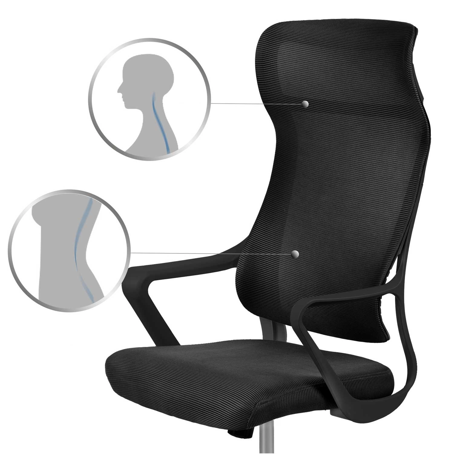 Høj ryglæn i mikromesh med formet lændestøtte forbedrer kropsholdningen og holder ryggen i en behagelig temperatur selv under lange siddesessioner.