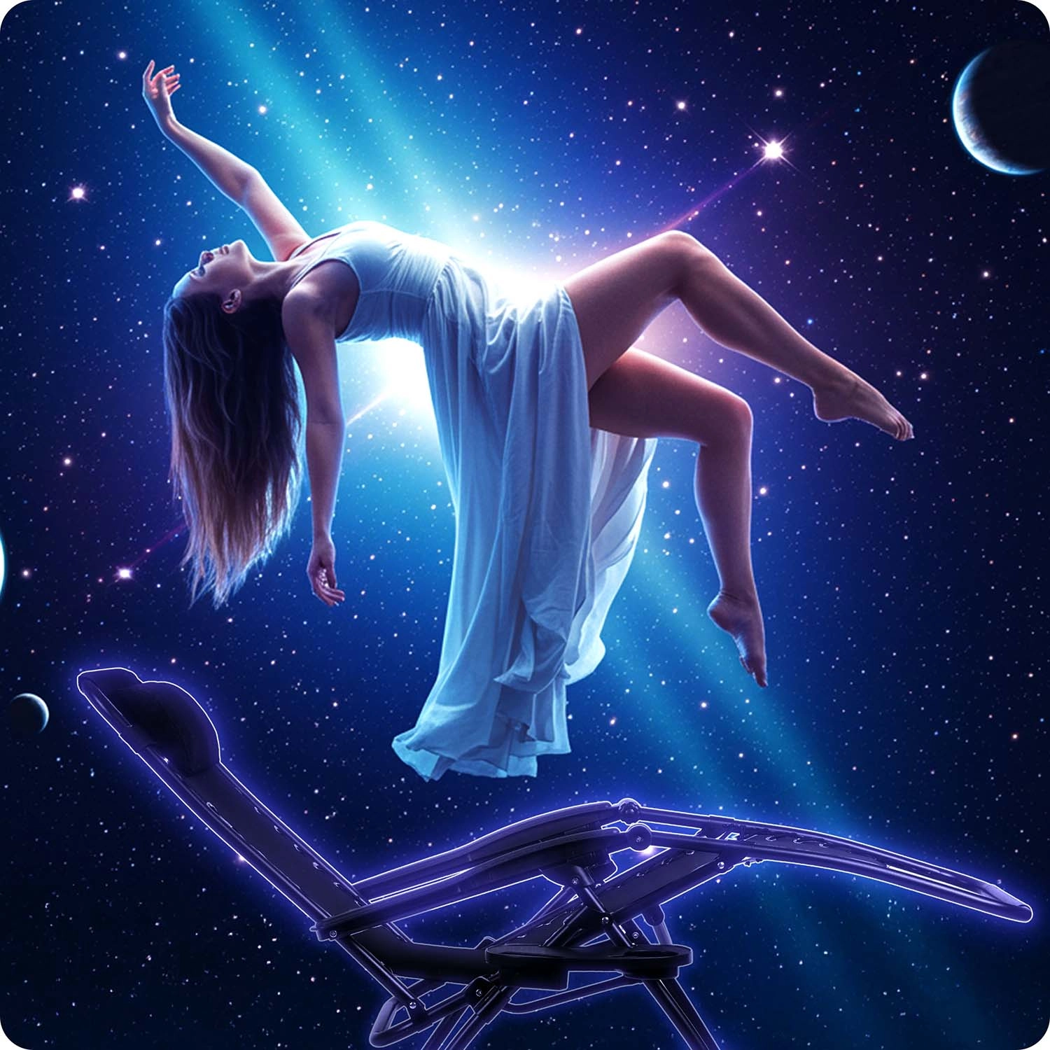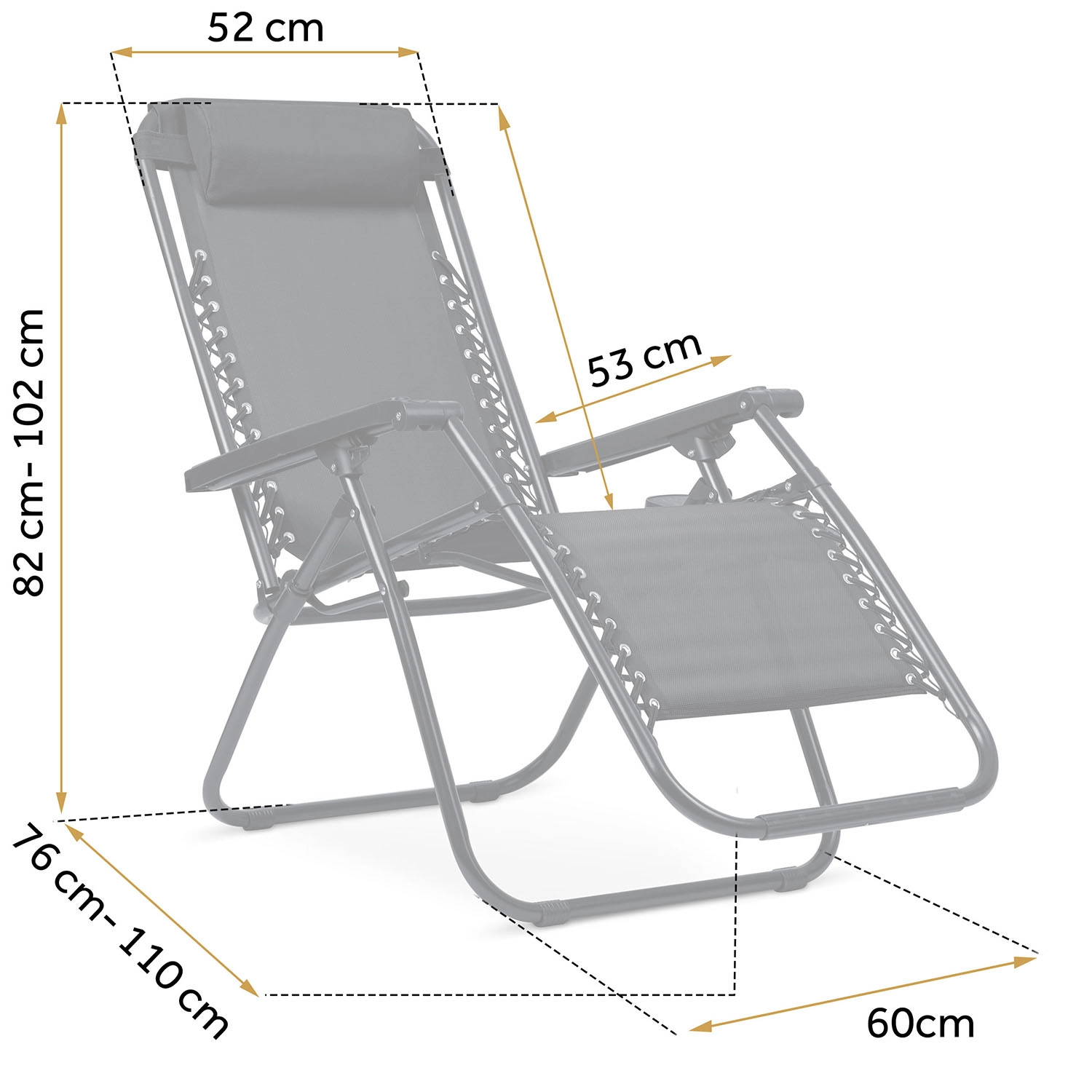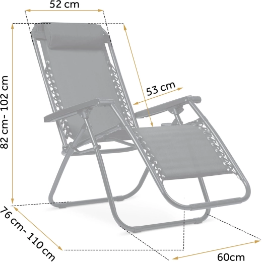 Slap af som i vægtløshed takket være positioneringen, der løfter benene op i højde med hjertet og dermed forbedrer blodcirkulationen og mindsker trykket på rygsøjlen. Liggestolen er ideel til altan, terrasse, have og camping – den foldes sammen på et øjeblik og er let at transportere.