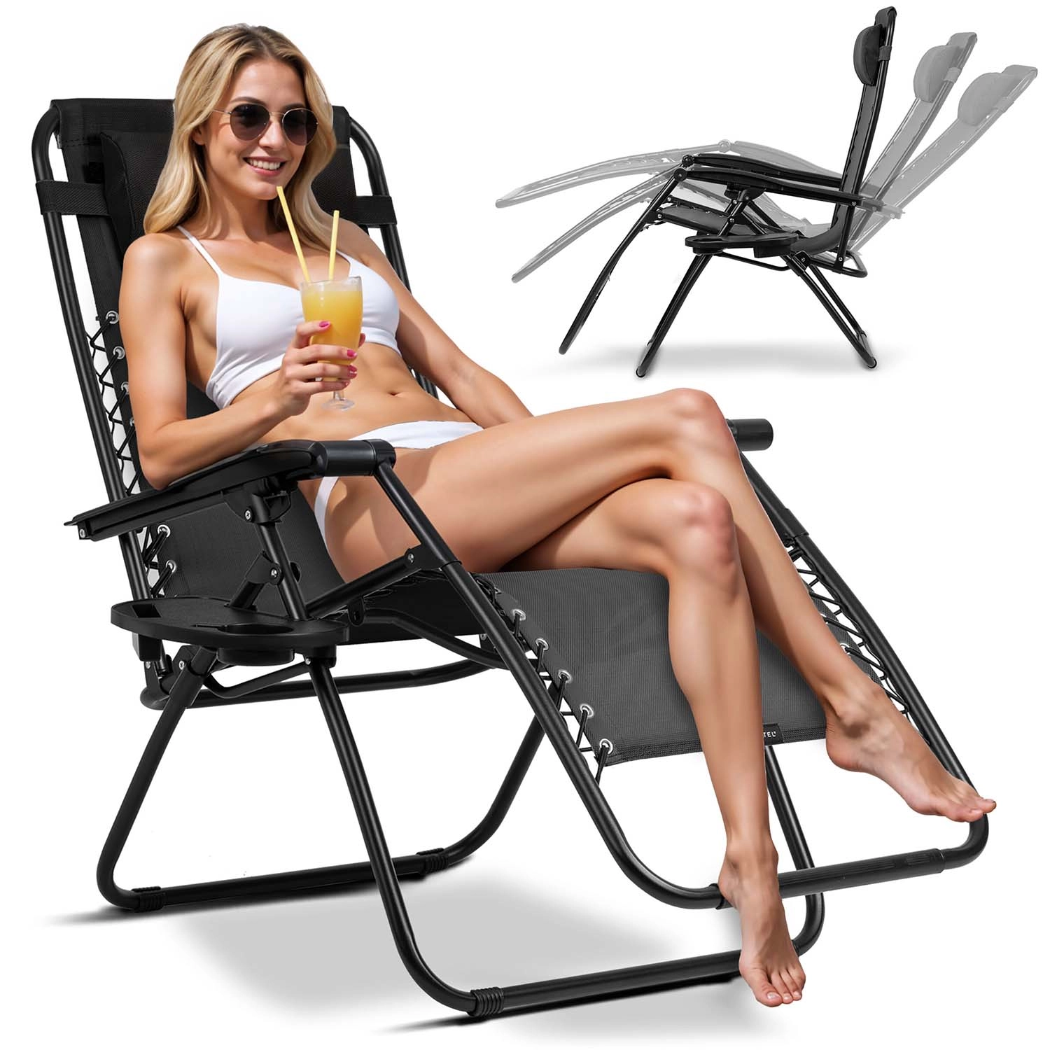 Gravitationsliggestolene gør det muligt at indtage en stilling med benene i højde med hjertet, hvilket fremmer bedre blodcirkulation, aflaster ryggen og giver maksimal afslapning. Med glidende hældningsjustering (op til 3 niveauer) indstiller du nemt den ideelle position til læsning, solbadning eller en eftermiddagslur. Det åndbare net er behageligt at røre ved og tørrer hurtigt, så stolene er ideelle til udendørs brug.
