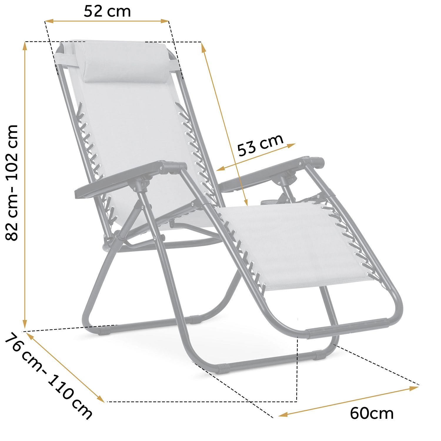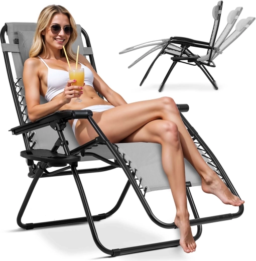 Robust stålramme med pulverlakering og textilene-stof, der er modstandsdygtigt over for vand og UV-stråling. Liggestolene kan let foldes og bæres – perfekt til rejser og camping.