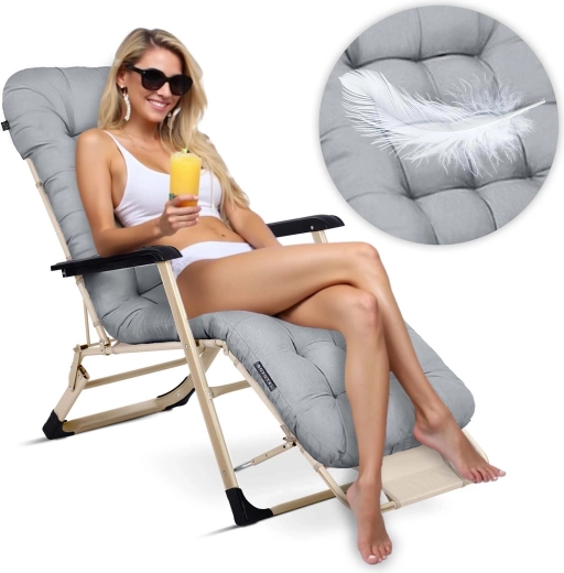 Den robuste ramme af holdbare materialer, UV-resistente elementer og skridsikre fødder sikrer lang levetid og stabilitet. Den praktiske konstruktion foldes hurtigt og fylder minimalt i sammenklappet tilstand – ideel til ferie, terrasse og poolområde.