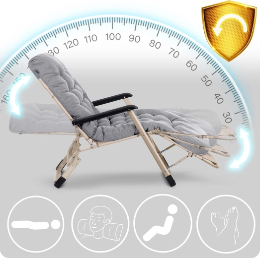 Det justerbare ryglæn og den 3-trins fodstøtte lader dig finde den ideelle position fra afslappet siddestilling til helt liggende for maksimal hvile.