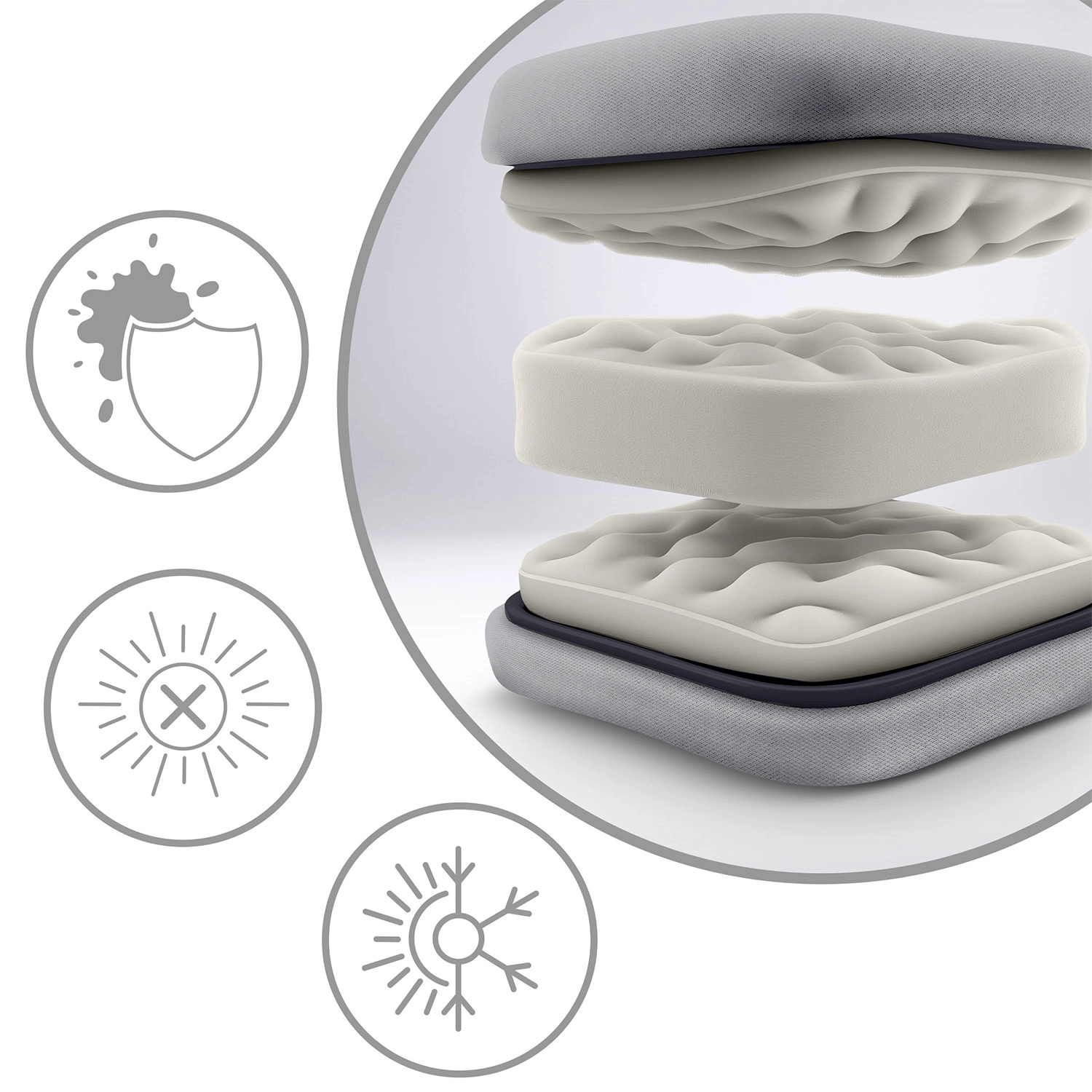 Den bløde, elastiske og quiltede pude med aftagelig nakkestøtte støtter hoved, nakke og ryg og sikrer langvarig komfort uden trykpunkter.