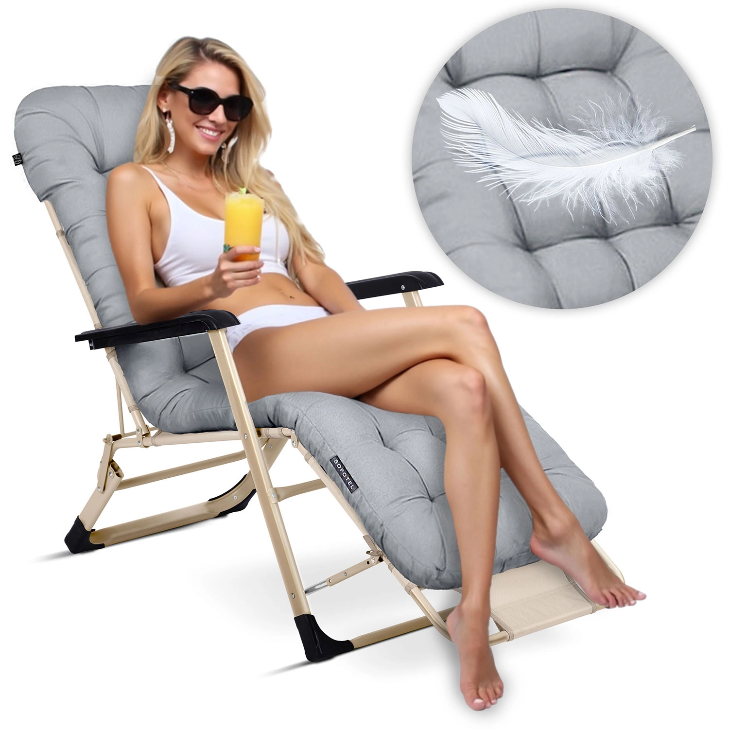 Liggestolene Sofotel ChillWell er designet til maksimal komfort under afslapning i det fri. Den kraftigt fyldte, quiltede pude føles behagelig og giver elastisk støtte til kroppen, mens den justerbare mekanisme lader dig glide ned i en helt flad liggeposition for maksimal afslapning og bedre blodcirkulation i benene.