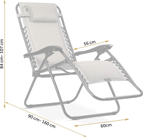 - Justerbart ryglæn / “zero gravity”-position, sammenklappelig konstruktion