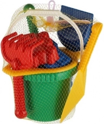 Dette plastsæt til sand inkluderer forskellige værktøjer og former til fantastisk bygning og skabelse. Takket være den praktiske pakning i et net med dimensionerne 20x28x12 cm kan hele sættet nemt transporteres.