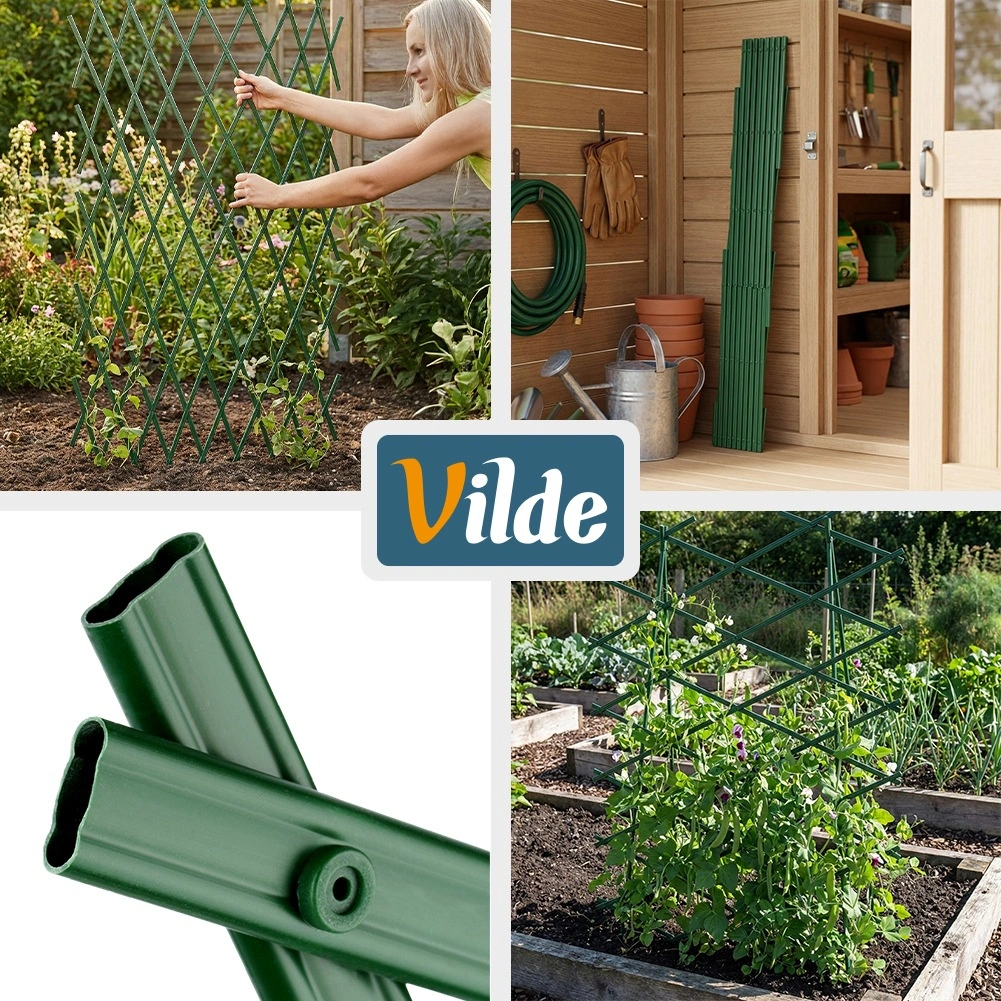 Dette alsidige haveespalier i grøn er en fremragende støtte til klatreplanter. Takket være den udtrækkelige konstruktion kan du nemt tilpasse det til pladsen og dermed fremme vertikal vækst og pladsbesparelse. Det lette, men holdbare materiale egner sig til udendørs brug hele året.