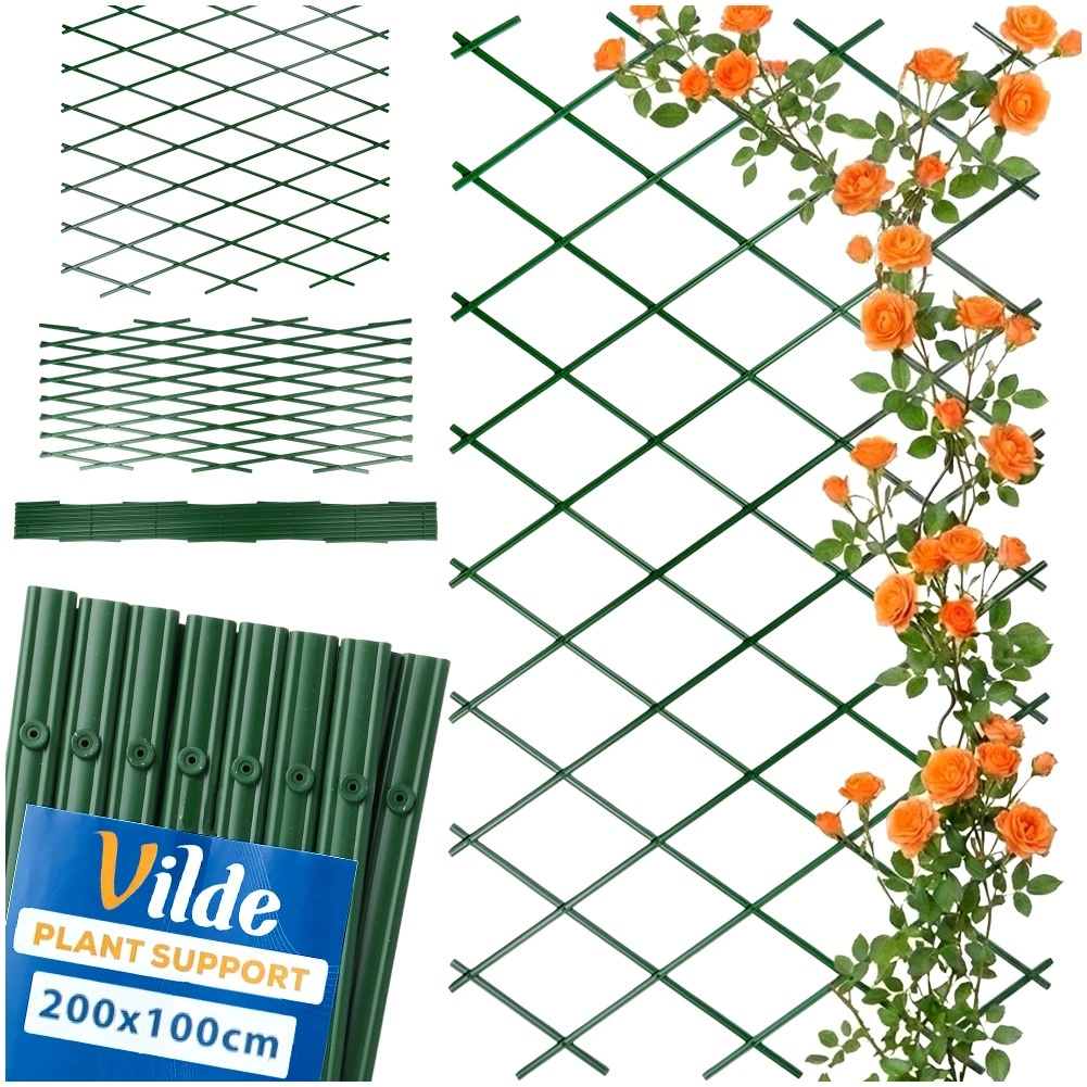 Praktisk haveespalier til klatreplanter i målene 200 × 100 cm med udtrækkelig konstruktion, holdbar plastudførelse og nem montering. Ideel til roser, efeu, vin og andre klatreplanter i haven, på altanen eller terrassen. I grøn farve, der falder naturligt ind i omgivelserne, og som hjælper planterne med at vokse opad for sund vækst og en dekorativ effekt.