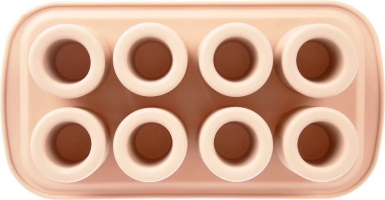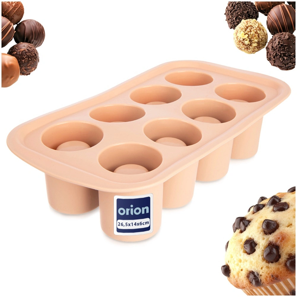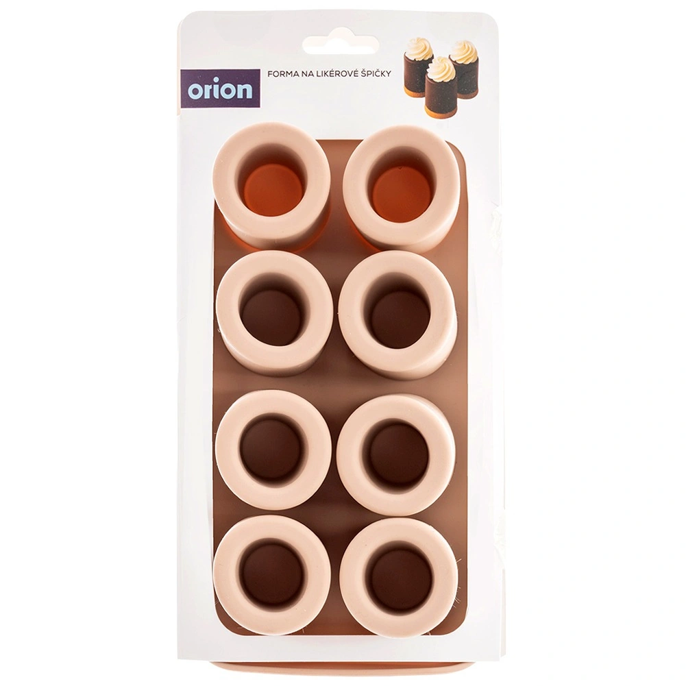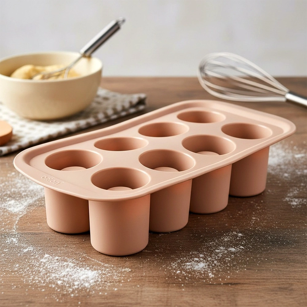 Praktisk silikoneform til bagning og frysning til imponerende desserter, mini-kager og småkager med hul i midten til cremer, mousser eller likører. Indeholder 8 forme med en diameter på 4,5 cm og en højde på 6 cm, er fleksibel, non-stick og tåler −40 °C til +200 °C. Velegnet til ovn, mikroovn, køleskab og fryser og kan tåle opvaskemaskine.