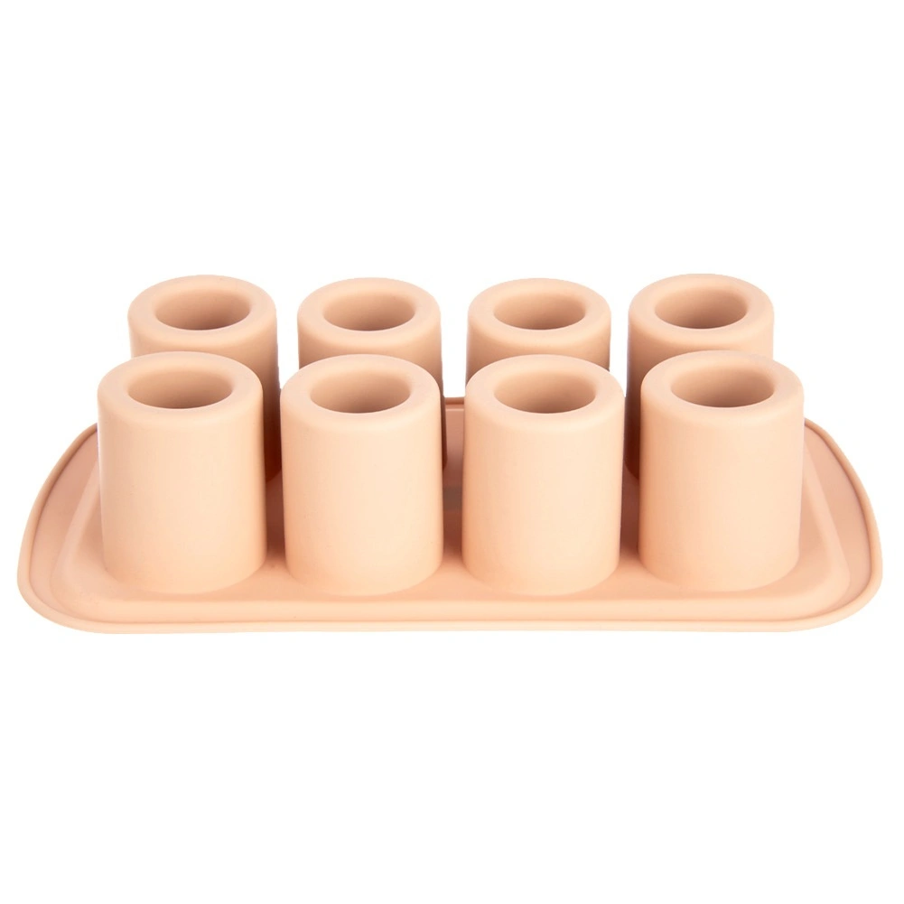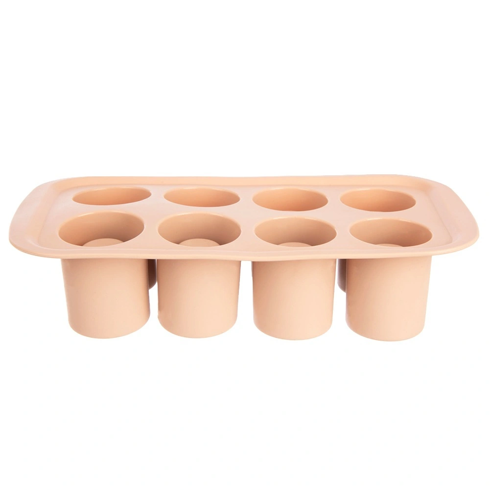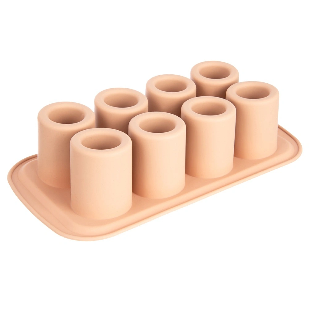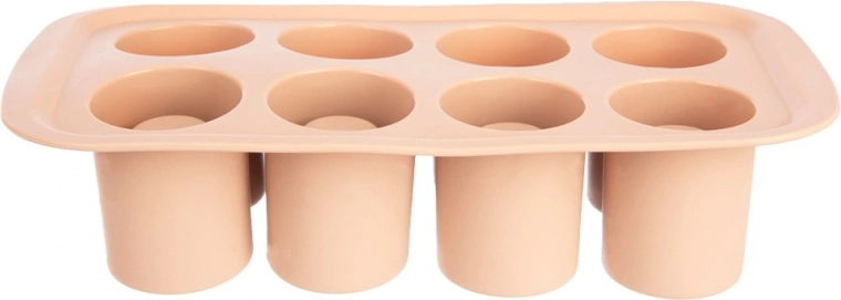 Praktisk silikoneform til bagning og frysning til imponerende desserter, mini-kager og småkager med hul i midten til cremer, mousser eller likører. Indeholder 8 forme med en diameter på 4,5 cm og en højde på 6 cm, er fleksibel, non-stick og tåler −40 °C til +200 °C. Velegnet til ovn, mikroovn, køleskab og fryser og kan tåle opvaskemaskine.