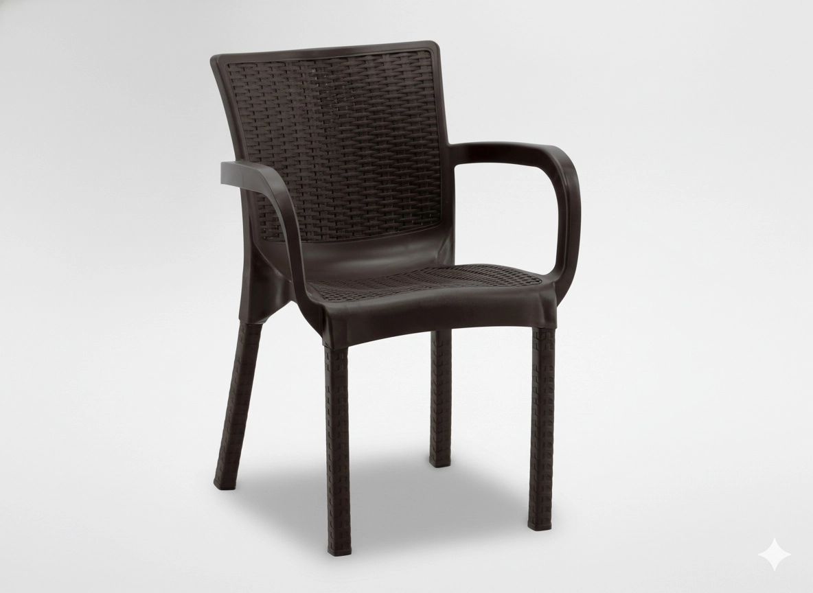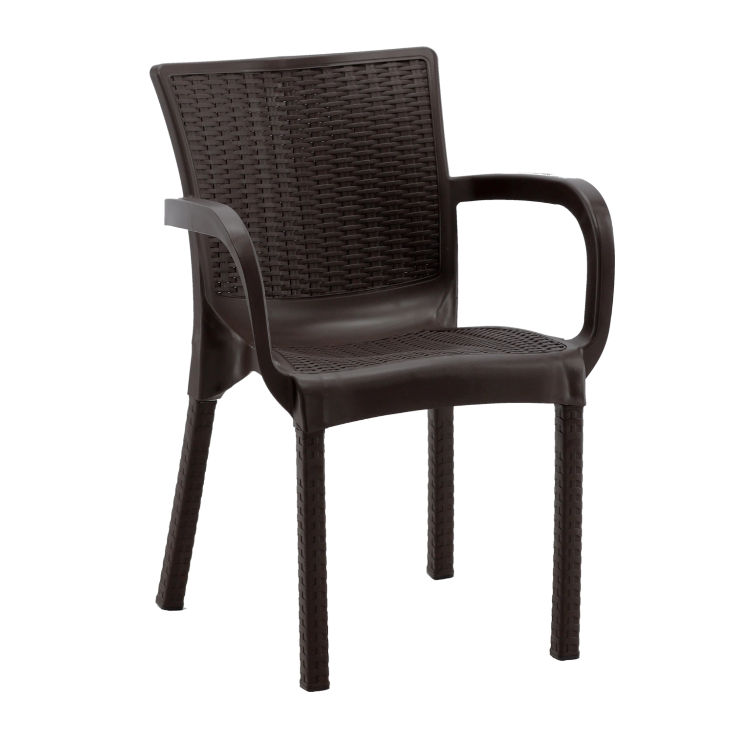 Giv din terrasse, altan eller have komfort og stil. Denne brune havestol med rattan-look byder på holdbar plastkonstruktion, behagelige armlæn og nem vedligeholdelse. Den passer perfekt til et udendørs bord og er let at matche med andet møblement takket være den alsidige farve.