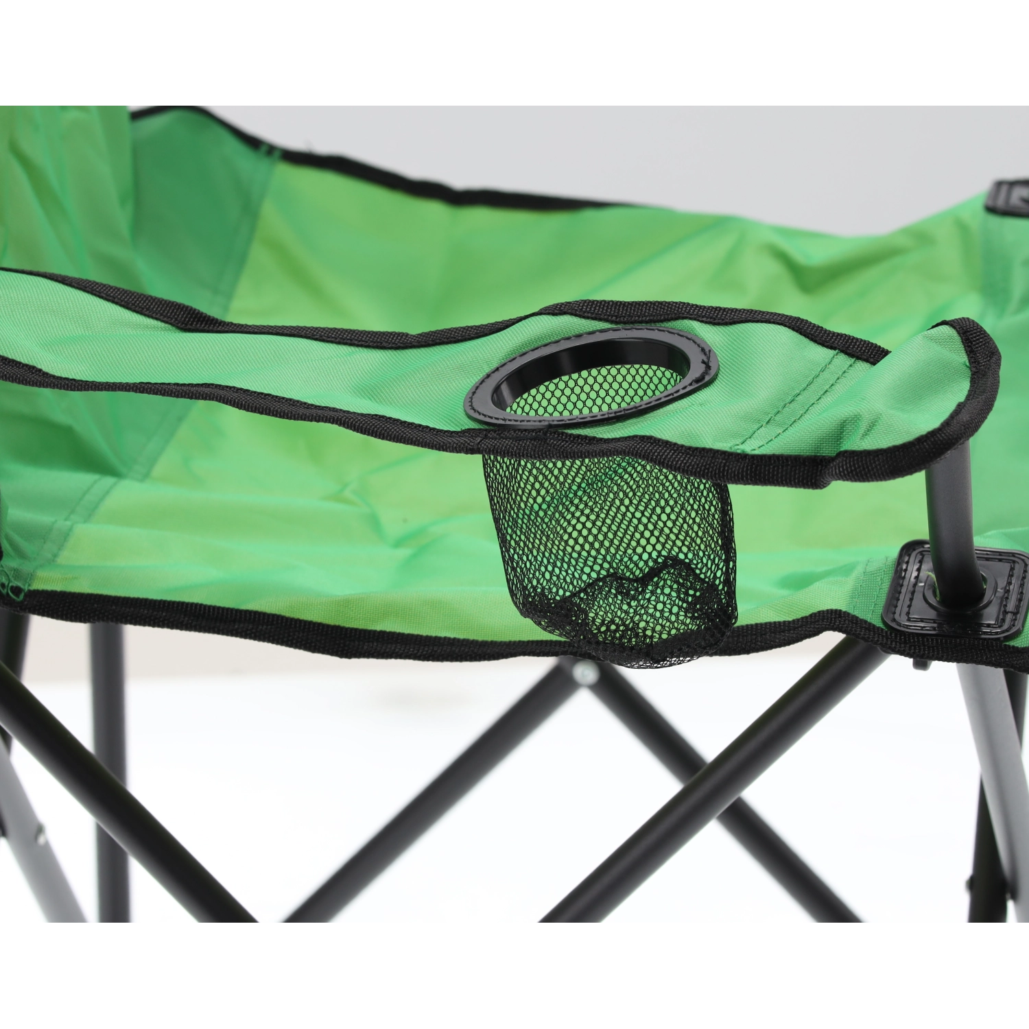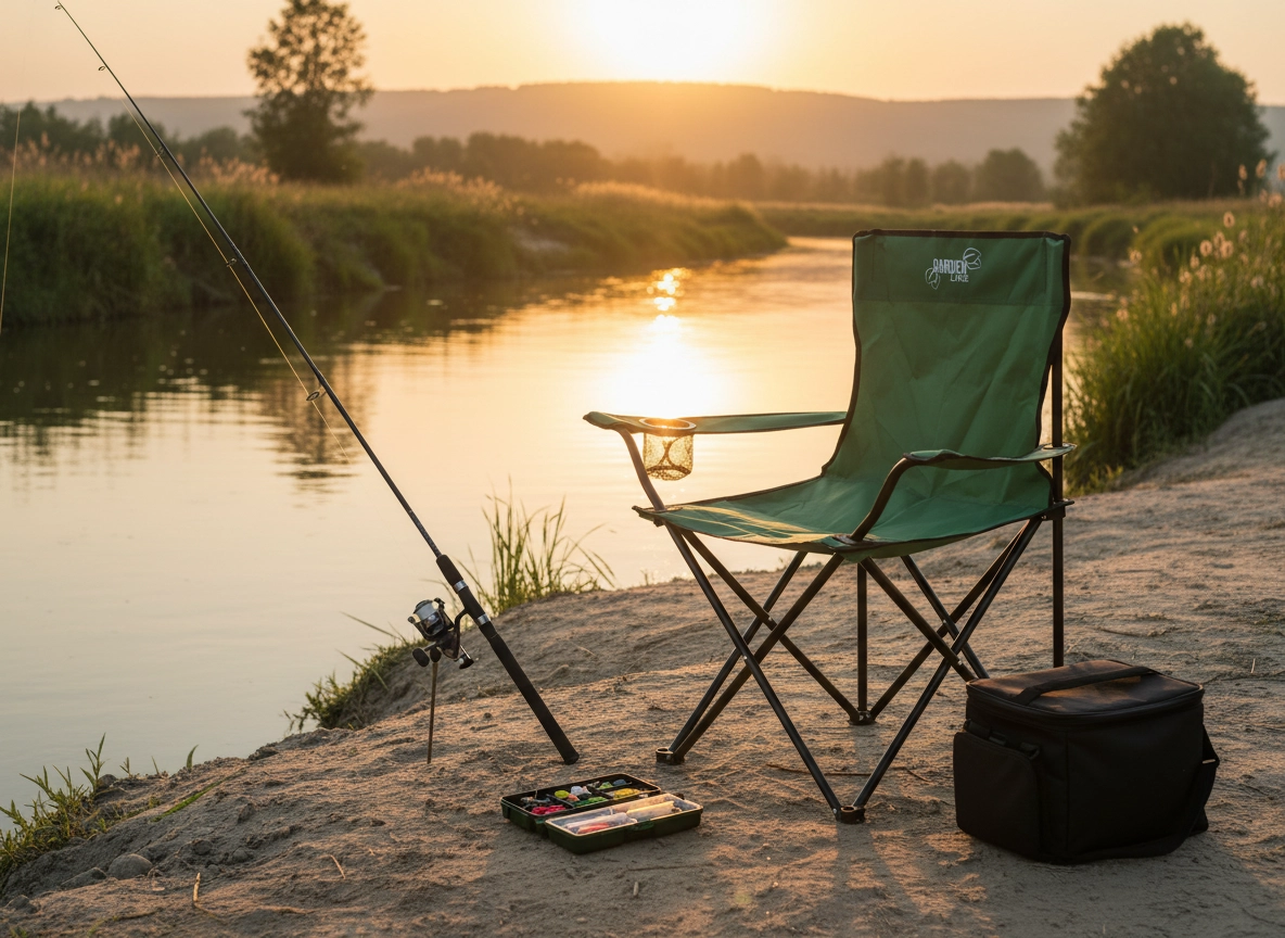 Armlæn med integreret kopholder og et robust sæde i 600D Oxford giver komfort til fiskeri, camping og afslapning i naturen.