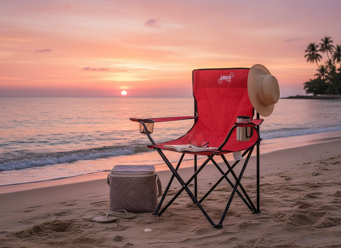 For maksimal komfort er stolen udstyret med en integreret kopholder i armlænet. Let, bærbar og alsidig – ideel til camping, fiskeri, festivaler, strand, have eller sportsbegivenheder.
