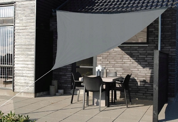 Det trekantede sejl skaber behagelig skygge over spisepladsen, solsengene eller legepladsen og sænker temperaturen på varme dage.