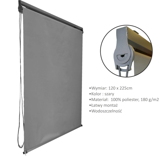 Dette udvendige rullegardin er en ideel løsning til pergolaer, terrasser og havepavilloner. Det stærke polyesterstof i stilfuld grå filterer solens stråler effektivt og hjælper med at holde en behagelig temperatur selv på varme dage.