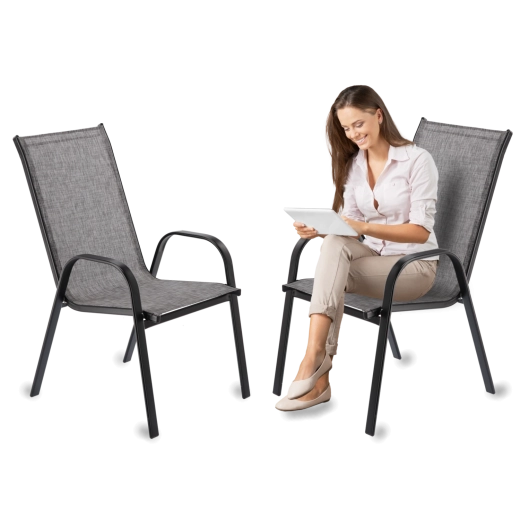 To stole fuldender dit udendørs hyggehjørne til læsning eller en kop kaffe. De kan nemt stables for at spare plads.