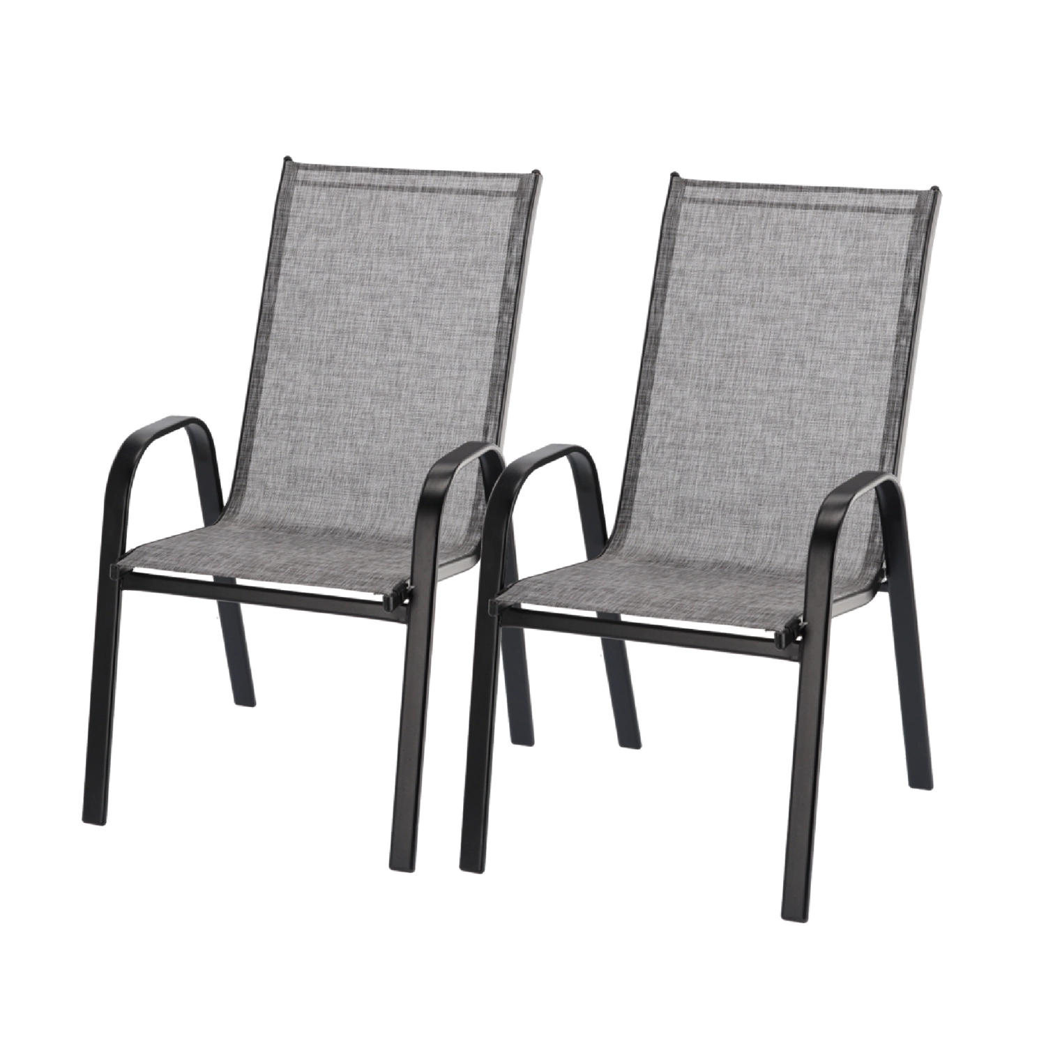 Nyd komfort og stil i frisk luft. De to GARDENLINE-stole med grå textilene og sort stålkonstruktion giver et alsidigt udtryk, der passer ind i enhver udendørs opsætning. Åndbart og hurtigtørrende tekstil er behageligt at røre ved og modstandsdygtigt over for UV-stråling, mens pulverlakeret stål sikrer styrke og lang levetid.