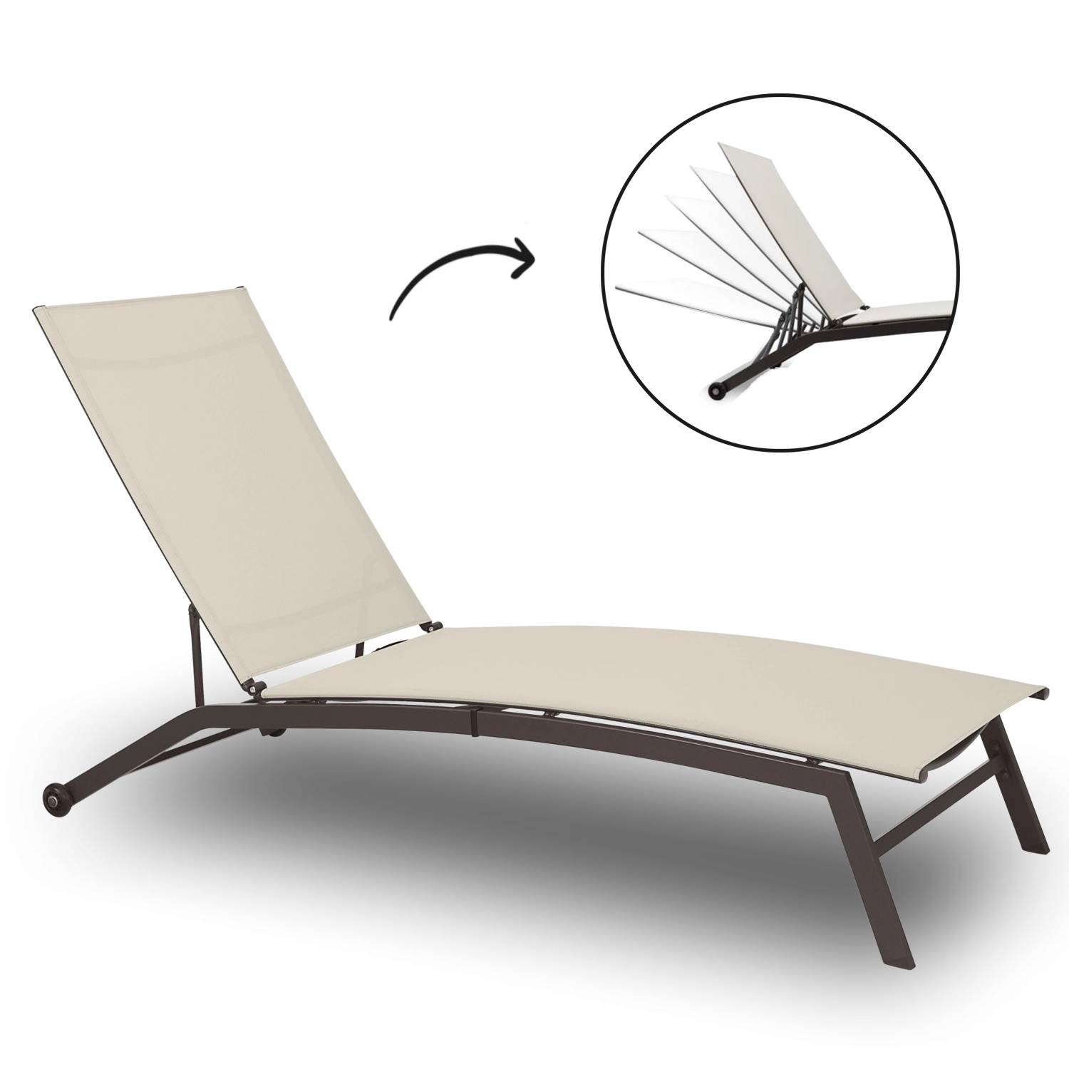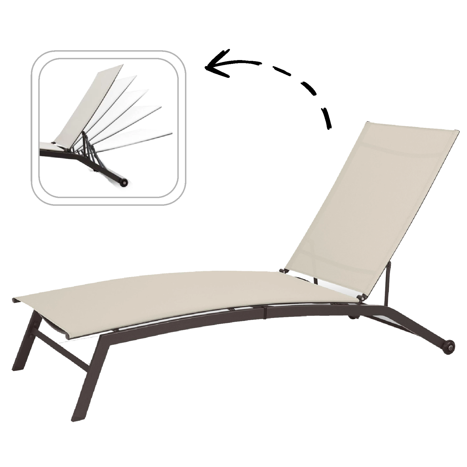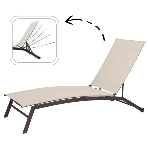 Indstil ryglænets vinkel præcis, som du vil – fra læsning til fuld solbadning. Den stabile mekanisme holder den valgte position sikkert og bekvemt.