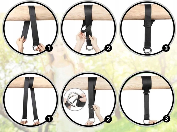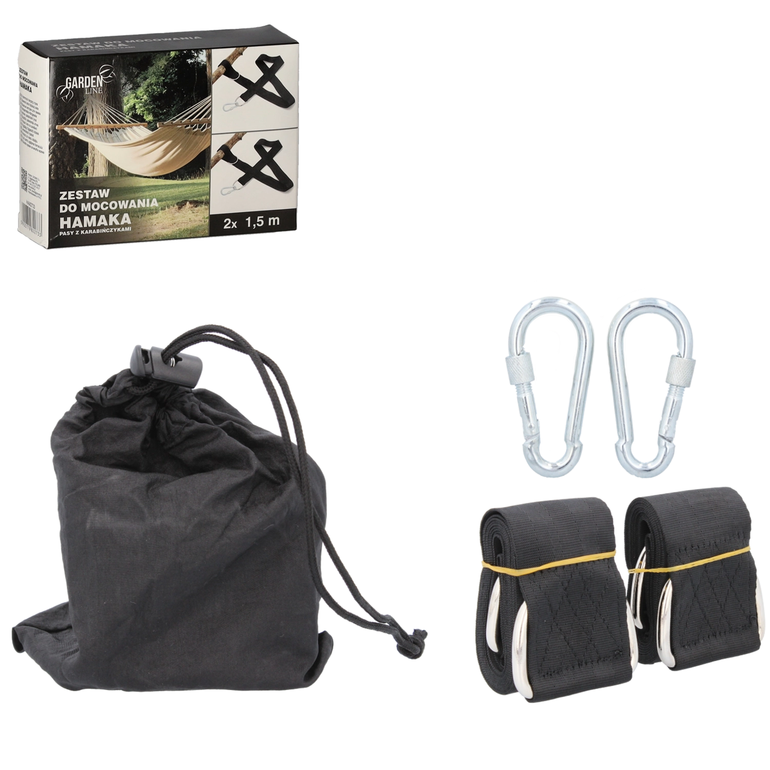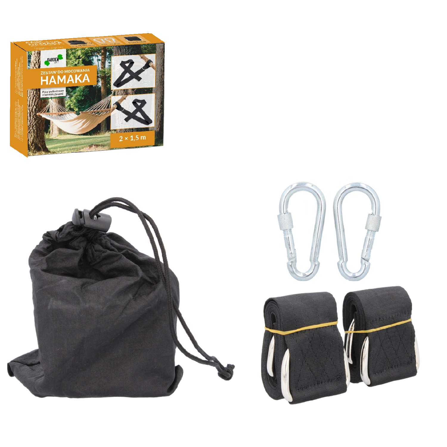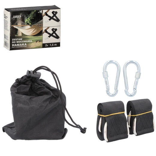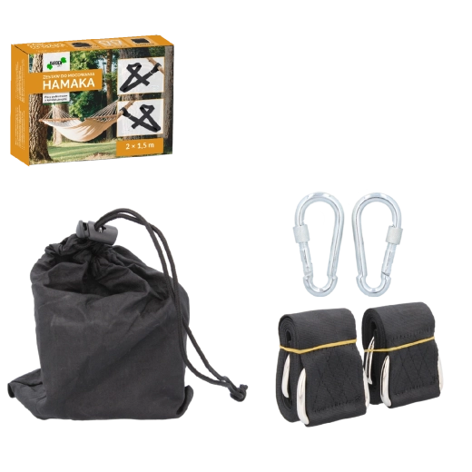 Pålidelig ophængning af hængekøje på få minutter. Komplet sæt med remme, karabiner og kroge giver stabilitet og komfort i haven, ved sommerhuset, på altanen eller på camping. Takket være den høje bæreevne og det robuste design kan du roligt gynge og slappe af.
