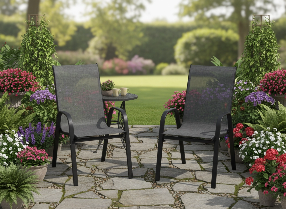 Den praktiske stabelbare funktion gør det let at opbevare stolene efter sæsonen og spare plads. Den lave vægt gør dem nemme at bære og håndtere, mens den stærke stålkonstruktion samtidig sikrer sikker og stabil siddekomfort.