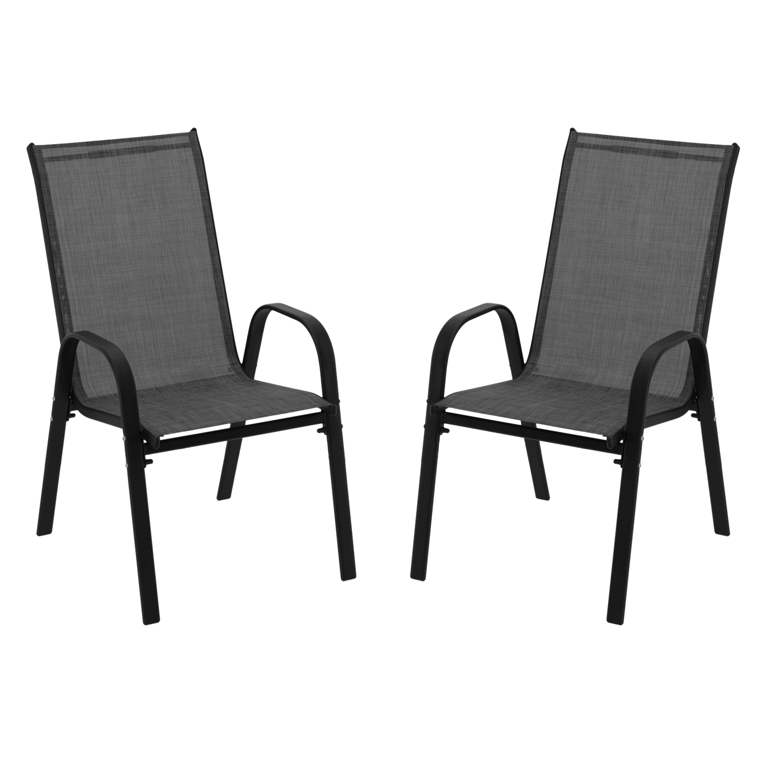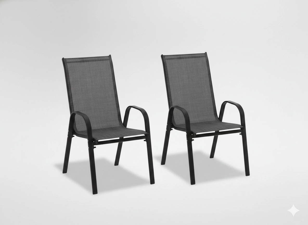 Nyd komfortabel siddeplads på terrasse, altan og i haven. Stolene har en stabil konstruktion af pulverlakeret stål, som er korrosionsbestandig, og et sæde med ryg i åndbar, hurtigtørrende textilene. Det moderne, alsidige design passer nemt til enhver udendørsmøblering.