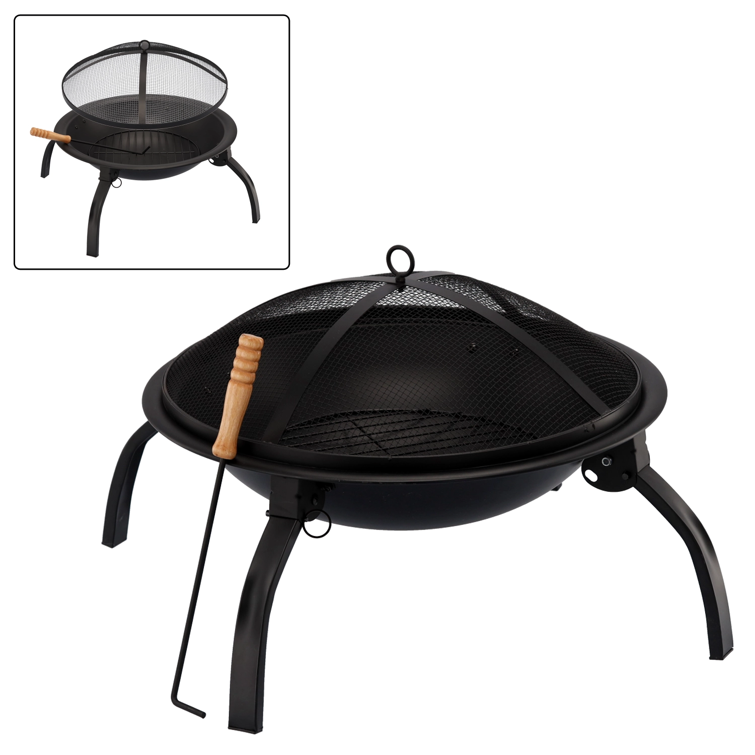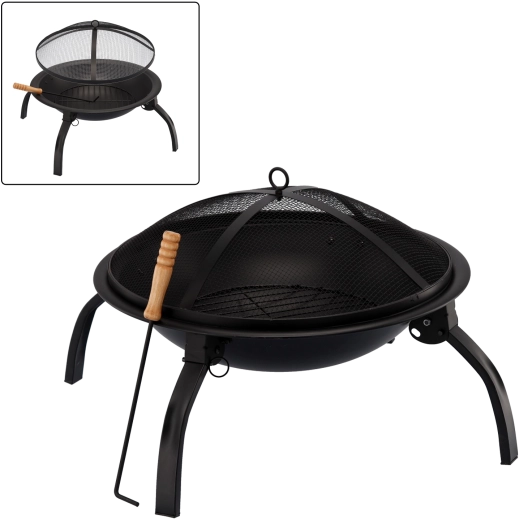 Nyd stemningen fra de flakkende flammer på terrasse eller i have med dette kompakte ildsted. Takket være varmeresistent overfladebehandling, sammenklappelige ben for nem transport og pladsbesparende opbevaring samt beskyttelseslåg med gnistsikret net er brugen sikker og komfortabel. I pakningen medfølger også en praktisk ildrager med træhåndtag for nem betjening.