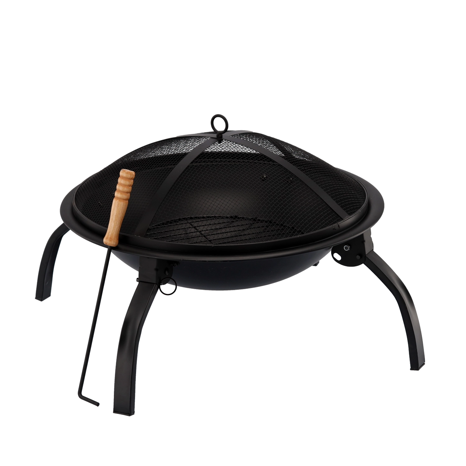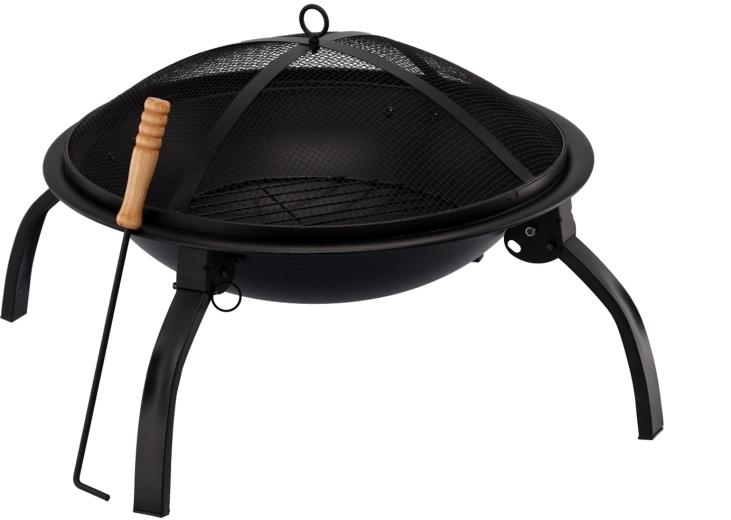Det stilfulde haveildsted bringer varme og hyggelig atmosfære til enhver udendørs aften. Den stabile konstruktion, varmeresistente finish og låg med net sikrer sikker afbrænding af brænde eller trækul og bedre kontrol over gnister. Takket være de sammenklappelige ben kan ildstedet nemt flyttes og gemmes væk, når det ikke er i brug.