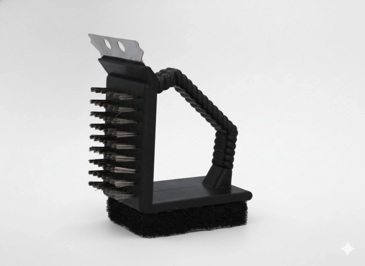 Gør grillvedligeholdelsen lettere med et multifunktionelt værktøj 3-i-1 – børste, skraber og svamp i ét. Det kompakte redskab fjerner fastbrændte rester, tager groft snavs og polerer risten uden besvær efter hver grilning.