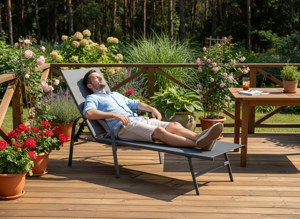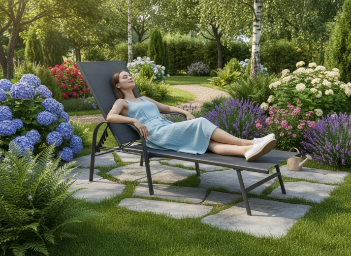 Den justerbare rygmekanisme gør det nemt hurtigt at skifte fra siddestilling til behagelig liggestilling – ideelt til læsning, afslapning og solbadning.