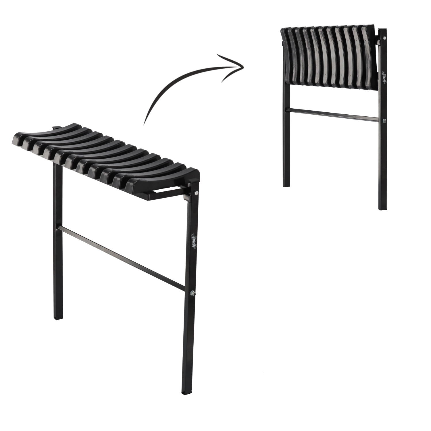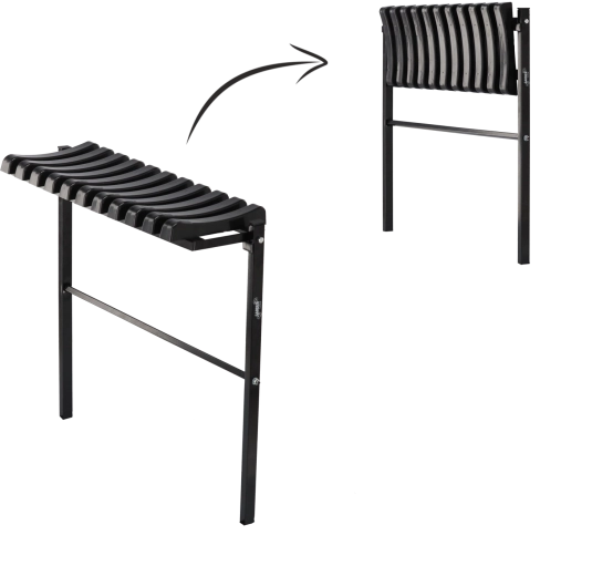 Denne kompakte bænk er designet til at tilbyde maksimal komfort præcis, når du har brug for den. Sammenklappet fylder den minimalt, og udfoldet giver den et stabilt og behageligt sæde. Det minimalistiske sorte design sikrer et værdigt udtryk og nem harmonering med forskellige typer monumenter.