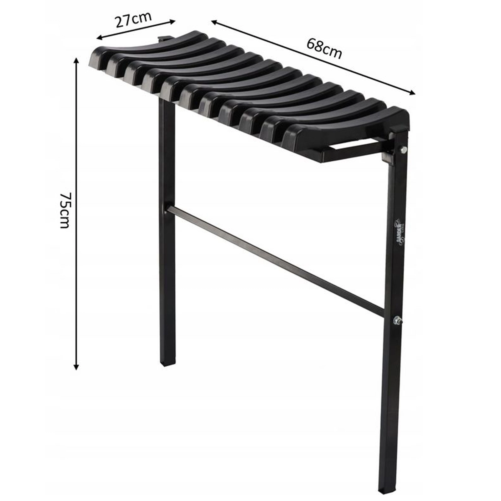 Praktisk og elegant sammenklappelig gravbænk på 68 cm, der giver behagelig siddeplads ved besøg på gravstedet. Takket være den robuste stålkonstruktion, sammenklappelige ben for pladsbesparelse og den tidløse sorte farve passer den naturligt til enhver gravsten og tåler vejrpåvirkninger.